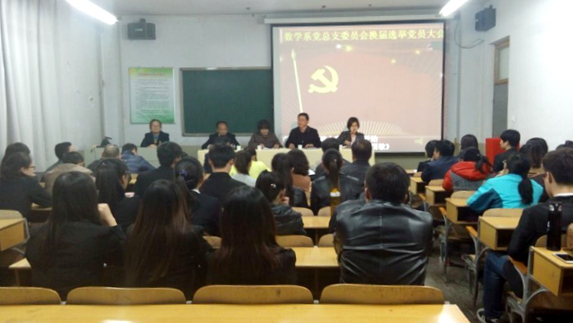 2015年 11月5日下午在1号楼124教室数学系党总支委员会召开换届选举党员大会。院党委书记韩泽春同志、党办主任秦晋荣同志出席了此次大会。