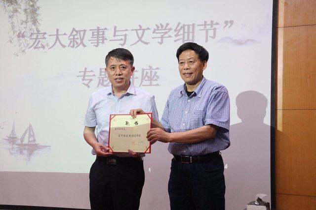 近日,中国电影文学学会副会长、中国作家协会影视委员会副主任黄亚洲先生应邀在南校东004学术报告厅开展了一场主题为“宏大叙事与文学细节”的讲座。中文系教师、长治地区部分作家、中文系300多名学生聆听讲座。党委委员、副院长赵巨涛主持讲座。