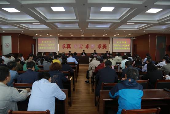 9月12日上午,我院“不忘初心、牢记使命”主题教育动员部署会议在北校区1号教学楼十层大会议室召开。省委第八巡回指导组副组长符里刚与成员张晓玲、戴晓栋、冯泽华莅临指导。党委书记韩泽春作动员部署讲话。党委副书记、院长茹文明传达王沪宁同志在中央“不忘初心、牢记使命”主题教育第一批总结暨第二批部署会议上的讲话精神。主题活动领导组办公室主任、党委副书记赵水琛主持会议。