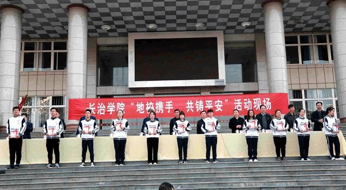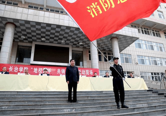 在第29个全国“119消防日”到来之际,为增强广大师生消防安全意识,提高师生、员工对消防事故的应急处置和疏散能力,扎实推进冬季消防安全工作,加强平安校园建设,11月5日下午,我院在北校区思想者广场组织开展了以“地校携手,共筑平安”为主题的消防宣传活动。学院党委书记郝勇东,党委副书记、院长茹文明等学院党政领导,长治市消防支队政委杜争峰,潞州区副区长牛海江,市政法委调研员丁书明参加活动。活动仪式由党委委员、副院长李强主持。