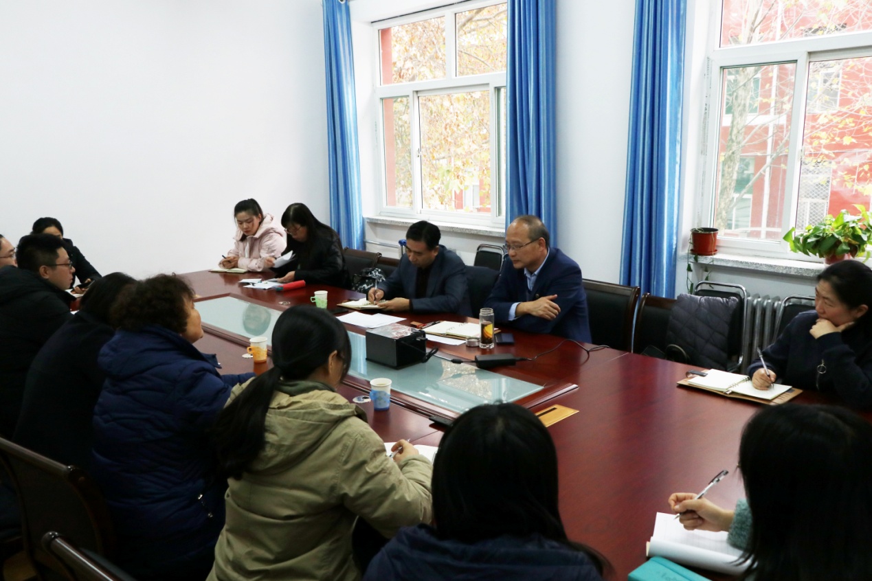 11月26日下午,党委书记郝勇东前往思想政治教学研究部、中文系调研,党委副书记马健宏,党委委员、副院长史晓东,相关职能处室负责人陪同调研。