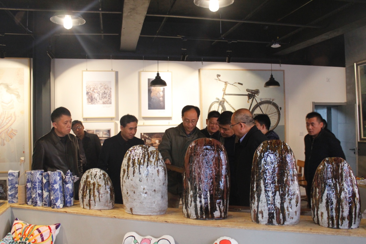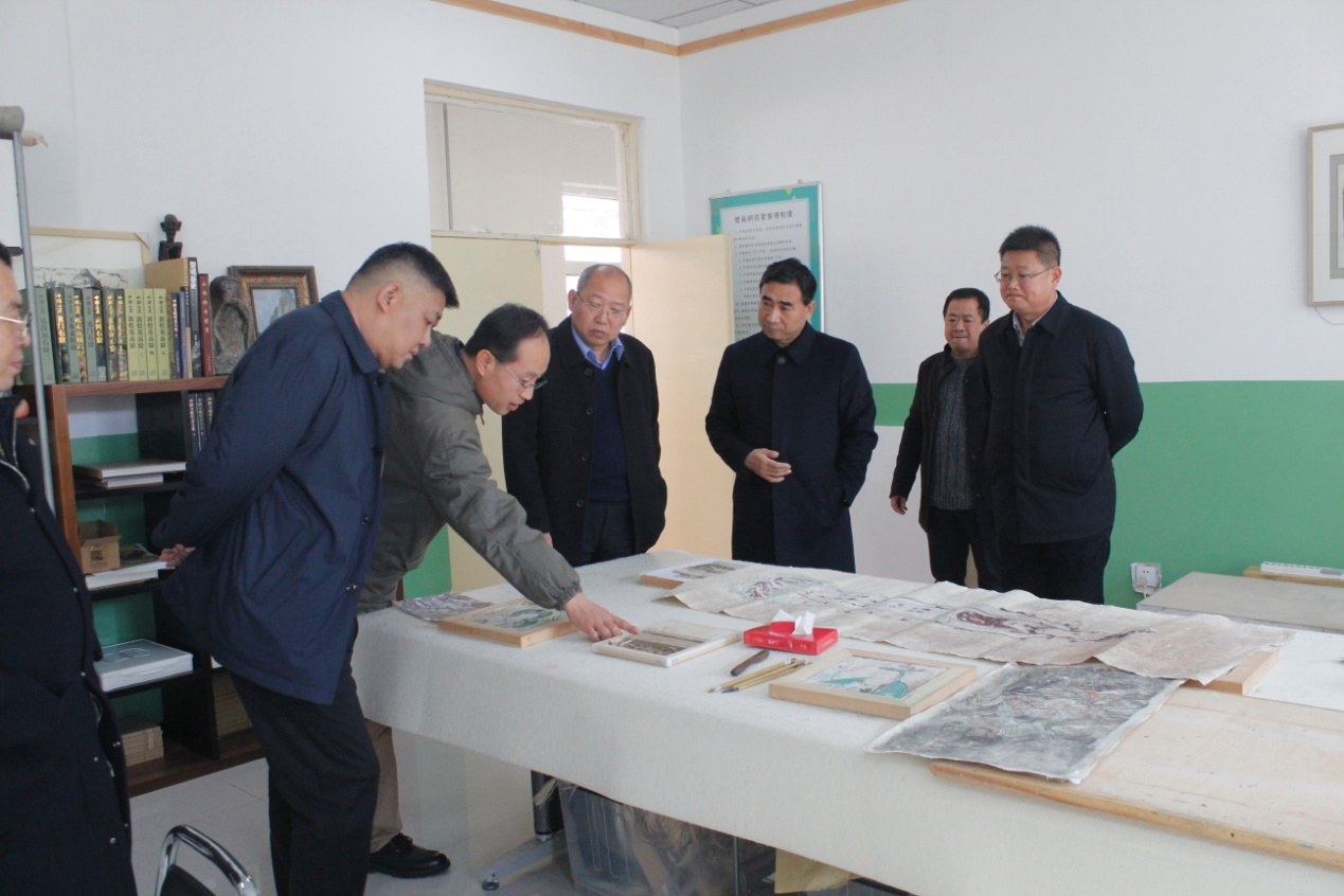 张珂、刘世民一行实地察看了我院美术系产教融合创新基地、彩塑壁画研究所和校史馆等地,高度评价了对我院推进现代信息技术与教育教学深度融合的办学理念,以及构建全方位全过程深融合的协同育人机制,并表示希望今后双方能进一步加强交流合作。
