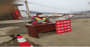 (计科1601班任雨涵和本村防控工作人员严格值勤)