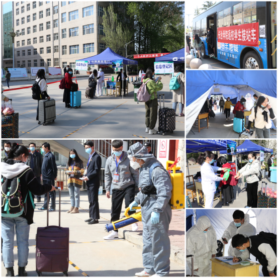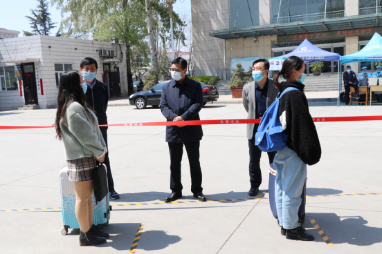 根据省委和省教育厅关于全省高校毕业年级开学返校的决策部署和省疫情防控领导小组《关于进一步做好2020年春季学期全省高校毕业年级开学准备工作的通知》等文件精神,按照省委省政府和教育厅要求,4月12日,beat365迎来了首批返校毕业生。党委书记郝勇东,党委副书记、院长茹文明和其他校领导班子成员亲自在校门口迎接毕业生返校。