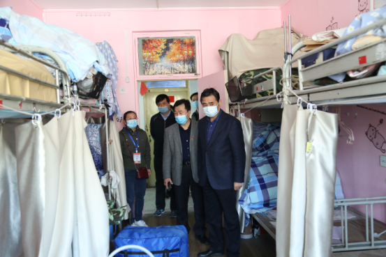校领导实地察看了所有返校报到过程中的重点环节、风险点和防控点,检查返校学生报到和寝室的用电、用水、安全卫生等情况,并与已经登记入住的同学亲切交流。在健康信息登记区,郝勇东仔细询问报到学生:“你家是哪里的?”“你坐什么交通工具过来的?”“感觉怎么样?还适应吗?”“有事情可以咨询学生处和辅导员老师。”在学生宿舍,茹文明亲切叮嘱入住学生:“要去户外多走动,不要串宿舍”“要勤洗手,多通风,不要扎堆”“我们安排有心理辅导老师,有需要可以预约心理辅导咨询。”老师的声声叮咛和丝丝关怀,温暖着同学们的心窝,让他们在学校感受到了家的温暖和父母一般的爱。同学们纷纷表示,一定按照学校安排,遵守纪律,做好防护,在圆满完成学业的同时,和学校一起取得抗疫的最后胜利。在看望已返校学生的同时,郝勇东、茹文明等校领导特别深入到即将安排封闭教师入住的宿舍进行检查,对于发现的问题要求有关单位立行立改,要及时收集入住教师反映的问题,切实为同志们提供一个良好的生活、学习环境,确保开学复课各项工作顺利进行。
