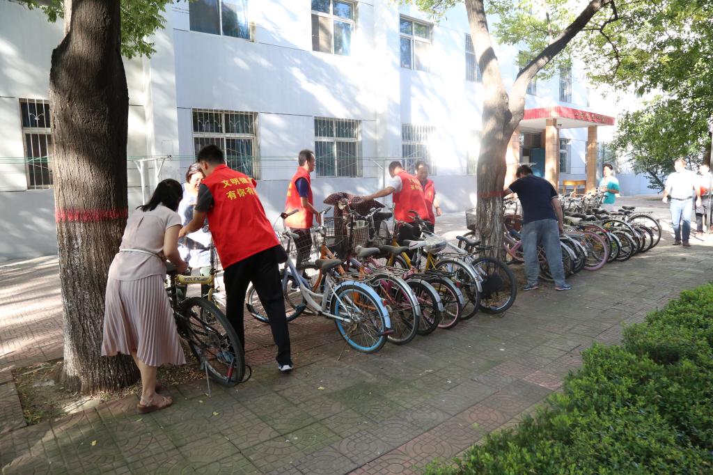 9月2号下午,党务一支部、党务二支部的志愿者们对校园和家属区无序停放的自行车、电动车进行排查和摆放,并对部分垃圾进行清理,给住户留下整洁的出行环境,还文明城市一个亮丽的风景。