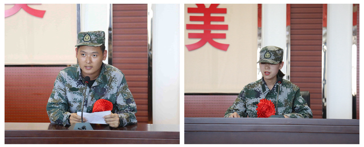新入伍大学生代表崔博、王小楠两位同学在会上进行了发言,他们表示,投笔从戎报效国家,奋发有为在军营里实现自己的理想,表达了献身国防,为学院争光的坚定决心。