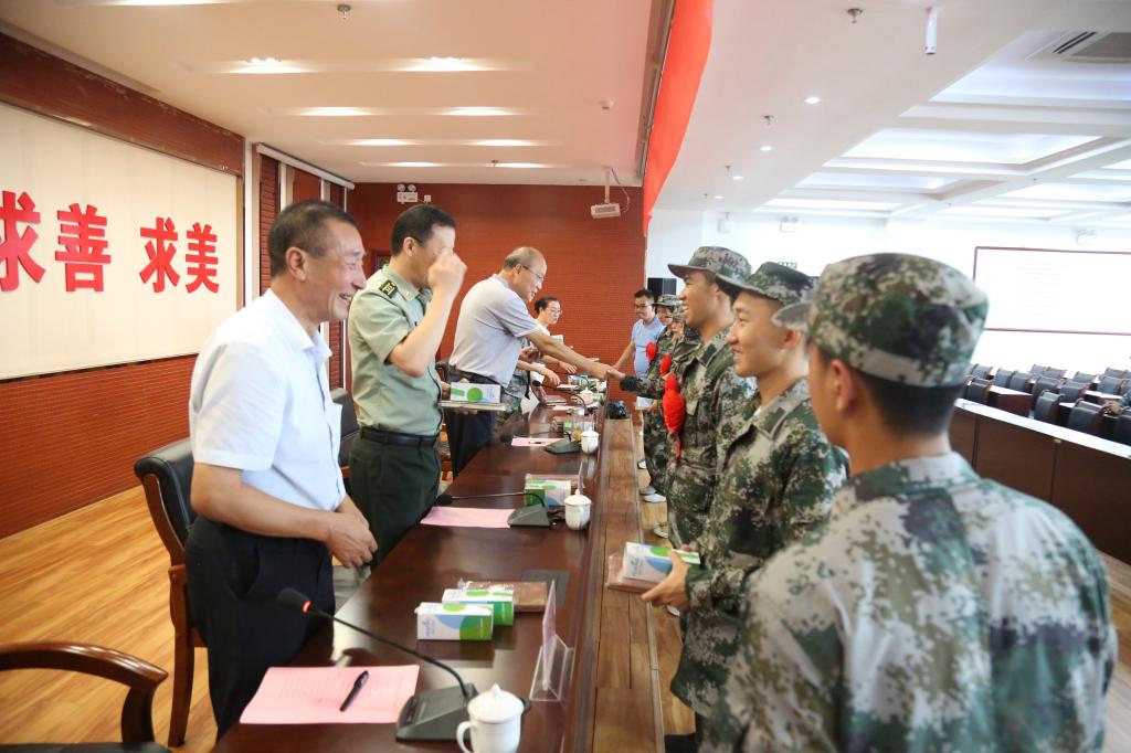 会后,与会领导向全体新入伍大学生颁发纪念品并与他们合影留念。