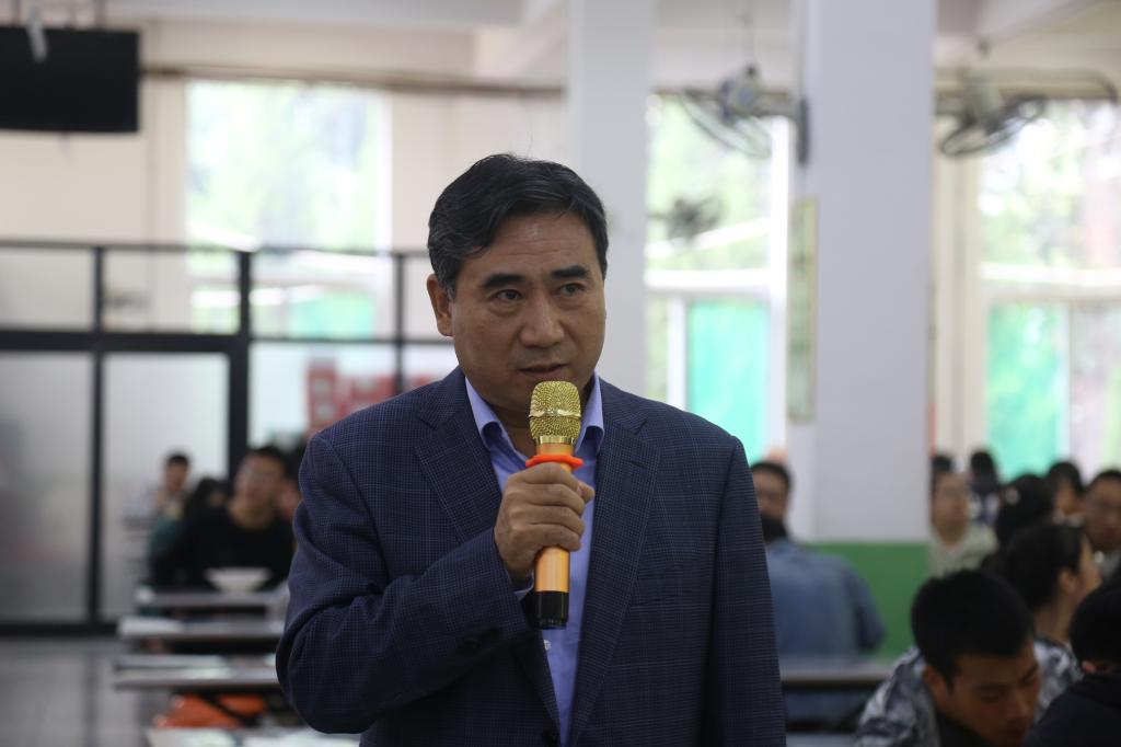 在充满节日气氛的南校区学生餐厅,郝勇东发表了热情洋溢的讲话。他代表学院党委行政向远离亲人、坚守在校园各个岗位的师生员工致以诚挚的谢意和节日的问候。