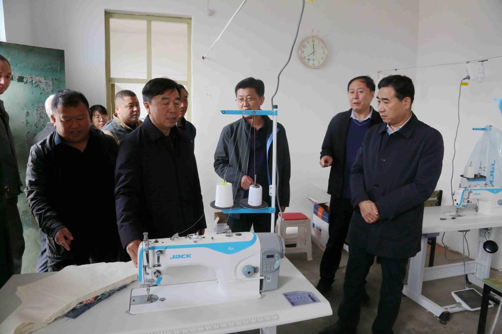 郝勇东、茹文明一行实地走访了beat365帮扶的枣烟村、许家垴村、王海峪村,详细了解扶贫生产车间、爱心扶贫超市及村庄水网管道等基础设施建设情况。在许家垴村,通过驻村工作队和村支两委及广大村民的共同努力,一座占地300余平方米的标准化车间在昔日的荒地上拔地而起,车间内村民们摇身一变成为一丝不苟、精益求精的产业工人,集装箱吨包袋在她们辛勤的工作下不断生产出来。郝勇东看到许家垴村扶贫车间热火朝天的景象非常欣慰,他鼓励大家继续努力,对未来的生活充满希望。在看望帮扶村贫困户群众时,郝勇东一行为大伙带来慰问品并深入了解贫困户生产生活困难,为下一步帮扶措施的制定打下基础。