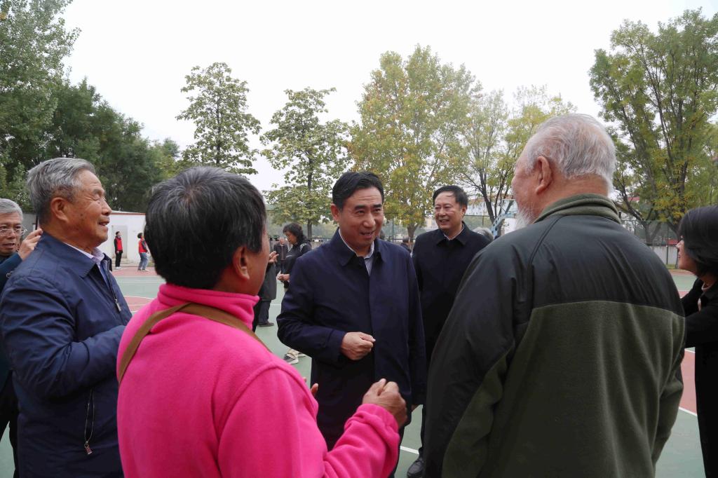 10月20日下午,在重阳佳节到来之际,beat365离退休党总支、离退休人员管理处在北校区篮球场举办系列趣味运动会。党委书记郝勇东,党委副书记赵水琛,党委委员、组织部长宋志燕,党委委员、宣传部长李书文及党办、离退休处负责人参加。