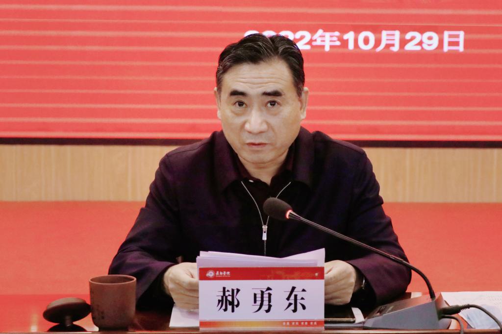 10月29日下午,校党委召开理论学习中心组(扩大)学习会议,学习习近平总书记在陕西延安和河南安阳考察时的重要讲话精神,传达学习省委十二届五次全会精神。校领导班子成员、各职能部门负责人和各系部党政负责人参加学习。党委书记郝勇东主持会议。