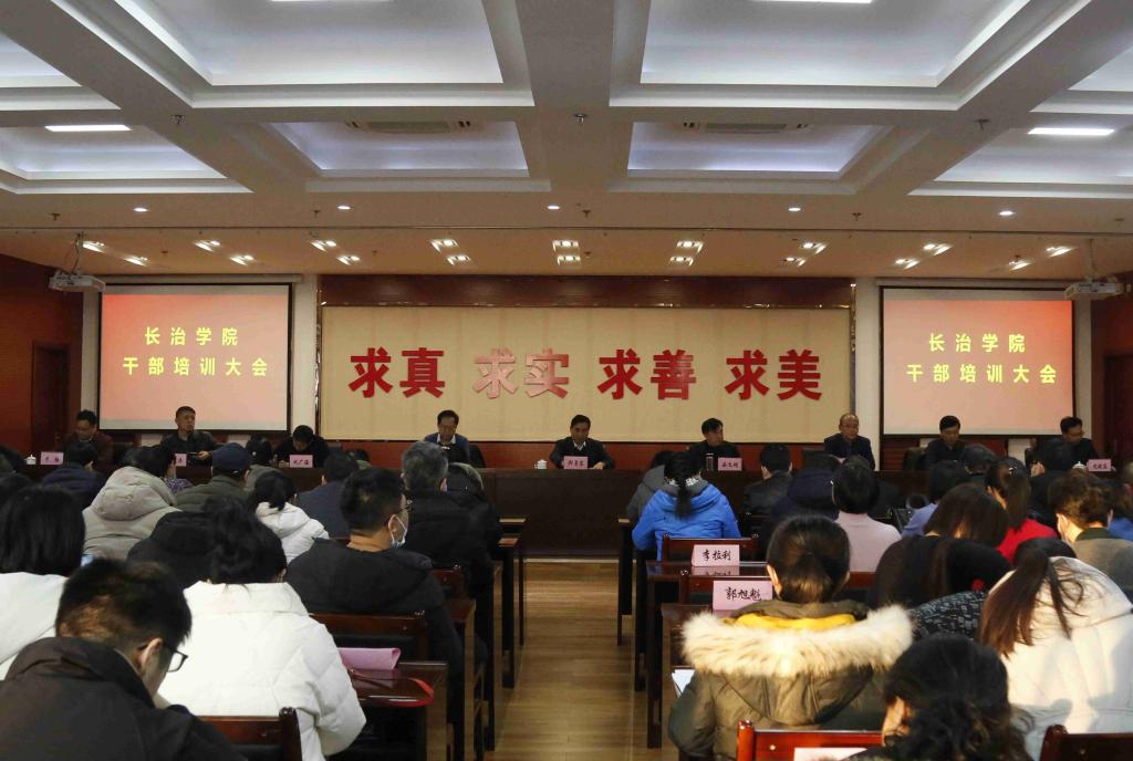 1月4日下午,beat365在北校区十楼大会议室召开干部培训会。党委书记郝勇东传达领学省委十一届十一次全会暨省委经济工作会议有关精神并讲话。校领导班子成员、副处以上干部、各系部办公室主任和分团委书记参加会议。党委副书记赵水琛主持会议。