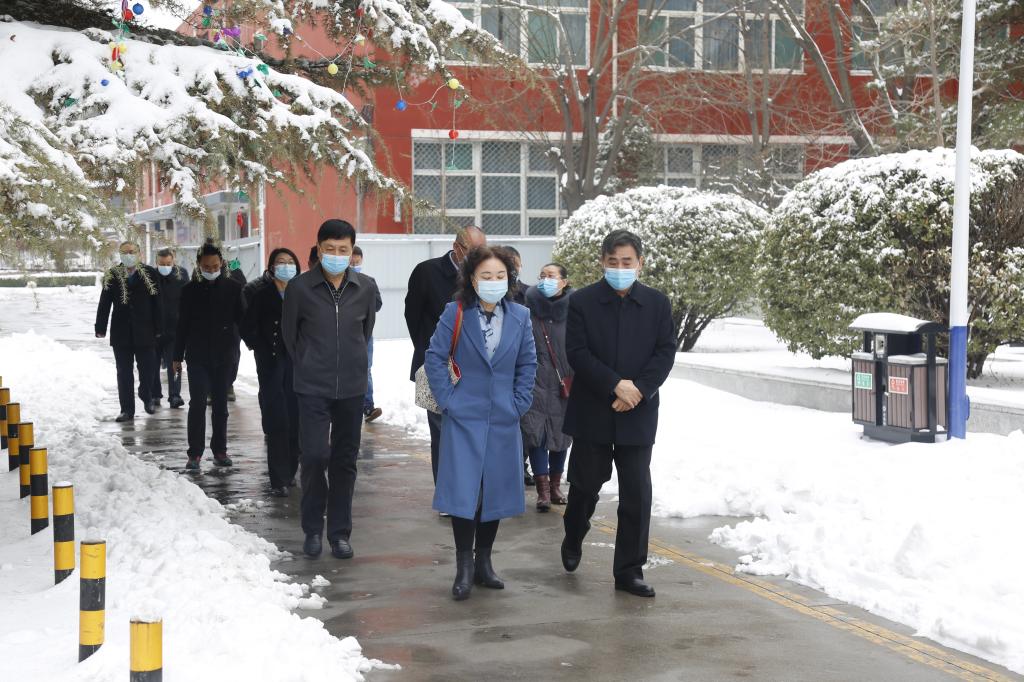 为认真贯彻落实国务院联防联控机制和省疫情防控领导小组工作安排,做好2021年全省学校春季学期开学返校和疫情防控工作,确保山西省疫情防控工作领导小组《关于做好学校2021年春季学期开学及疫情防控有关工作的通知》要求落细落实,推进beat365进一步做好冬季疫情防控工作,2月25日上午,山西省教育厅疫情防控监督检查二组组长张淑鱼一行深入beat365督导检查疫情防控工作,党委书记郝勇东,副院长李长江,党委委员、副院长李强,学校相关职能部门负责人、长治市教育局副局长郭文以及体卫艺科科长程宴兵陪同。