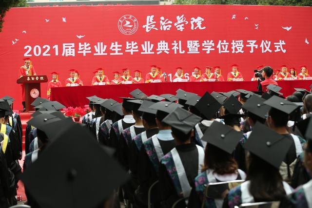 郝勇东以《不忘初心担使命 逐梦未来再出发》为题发表了热情洋溢的致辞。他首先代表学校党政领导和全体师生向2021届毕业生致以最美好的祝愿,寄语毕业生在人生新的征程上,努力做情系家国、心怀天下、视野开阔、自信从容的新时代青年。他对毕业生提出五点希望;一是立志报国,做时代使命的担当者。希望同学们能够树立远大的理想抱负,想国家之所想、急国家之所急、应国家之所需,始终与祖国同心同向同行,把小我融入兴国、强国的大我之中,以青春之我、奋斗之我在实现中华民族伟大复兴中国梦的实践中放飞青春梦想,书写人生华章。二是牢记太行精神,做红色基因的传承者。红色基因植根于革命先烈用鲜血染红的泥土中,传承于一代一代人不懈奋斗的事业中。长治是一块红色热土,这里孕育锻造了伟大的太行精神。学校在办学治校的过程中,始终把传承弘扬太行精神作为立德树人的重要内容,用太行精神培育学生成才、激励学生成长,希望同学们无论今后走到哪里、身居何处,都能永葆这份红色信仰,让红色基因代代相传,让革命薪火常燃不灭。三是崇德向善,做良好风尚的示范者。德是为人之本、立身之基,一个人只有打牢修身立德的根基,人生的道路才能越走越开阔,希望同学们涵养正气,恪守正道,弘扬新风尚,传递正能量,作新时代明大德、守公德、严私德的榜样和示范。四是逐梦前行,做脚踏实地的奋斗者。希望同学们把脚踏实地、努力奋斗作为一种精神追求和社会责任,任何时候都不驰于空想,不骛于虚声,做只争朝夕的行动者,做脚踏实地的实干家,躬身前行,久久为功,在不懈奋斗中成就自己的出彩人生。五是敢闯敢拼,做勇立潮头的创新者。希望同学们作为国之栋梁,能够自觉学习和弘扬科学家精神,立雄心壮志、攀科技高峰,以敢闯敢拼、敢为人先的精神,作新时代创新的生力军、排头兵,在建设科技强国的伟业中,贡献自己的青春力量。