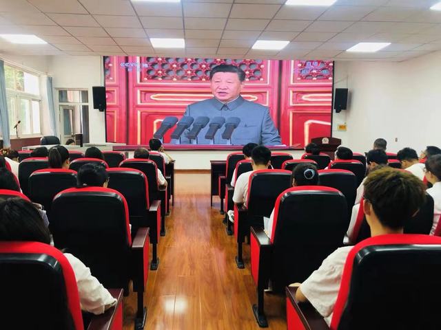 7月1日上午,举世瞩目的庆祝中国共产党成立100周年大会在北京天安门广场隆重举行。党委书记郝勇东等党政领导和党员、干部、师生代表700余人,在北校区1号楼十楼大会议室和实验剧场集中收看了庆祝中国共产党成立100周年大会直播盛况。各党总支、党支部、党小组组织师生在办公室、多媒体教室、实验室等地进行了实时收看。