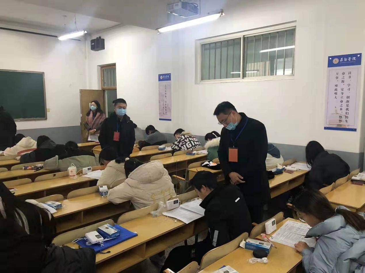 2021年12月25日-26日,beat3652021-2022学年第一学期公共课期末考试全面展开。考试期间,党委副书记、校长曹景川,党委委员、副校长铁军在教务部主任杨晓娟,副主任宋海鹰、齐小艳的陪同下,深入考试现场进行巡视检查。校领导对同学们的精神状态、考场秩序以及监考教师履职等情况进行了细致检查。