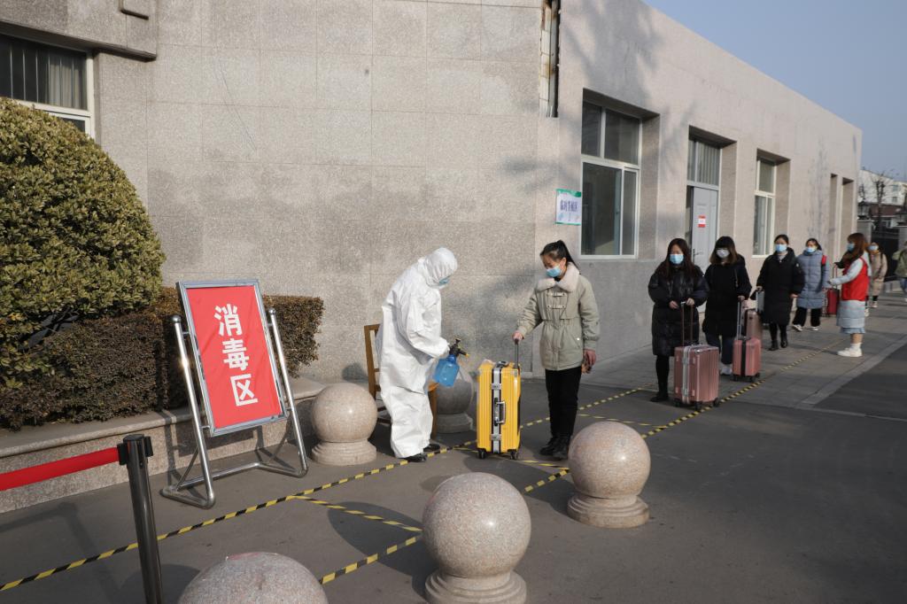 本次活动严格按照疫情防控应急演练预案,结合学校疫情防控工作条例,围绕疫情防控工作人员业务培训,返校学生卫生消杀,进出校区人员登记、体温监测、验码,疑似感染人员应急处置,学生就餐管理、出入宿舍管理等环节流程进行。演练中,佩戴口罩的学生在指定区域下车,由身着防护服的工作人员对携带行李箱、背包进行严格消杀后,在志愿者和工作人员引导下沿特定路线,保持安全距离,有序进入校园。检查记录人员一旦发现有人员体温异常的,在引导工作人员的带领下,迅速被带入应急隔离区进行隔离,在留观室观察,并模拟上报疫情防控指挥部,及时联系定点收治医院。同时由专职人员严格按照规定法配制消毒液,对疑似人员接触重点区域进行细致喷洒,不留死角,全面消杀。整个演练过程有条不紊,极大提高了学校应急处置疫情风险的能力和水平。