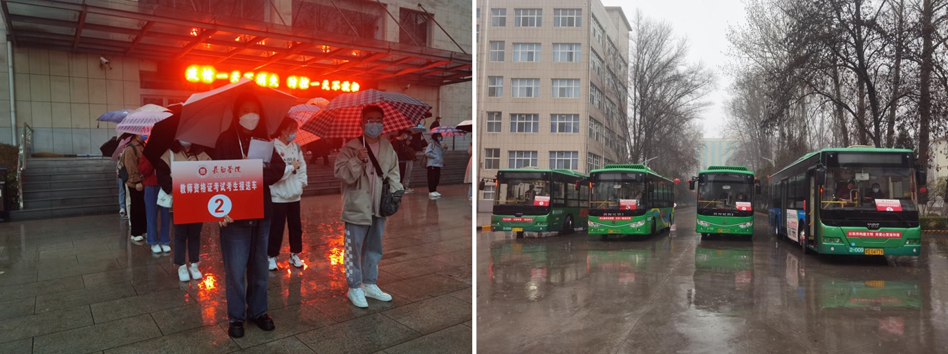 2022年上半年全国中小学教师资格考试笔试于3月12日举行。为全面做好beat365考生的疫情防控和服务保障,学校党委行政高度重视,由学工部牵头,联合党办、校办、团委、保卫部和各系部,组成“送考服务队”,安排13辆大巴车,由辅导员亲自带队,为学生爱心送考,实现了beat365考生与七个考点“点对点”接送,全程闭环管理,坚决筑牢校园疫情防控安全屏障。