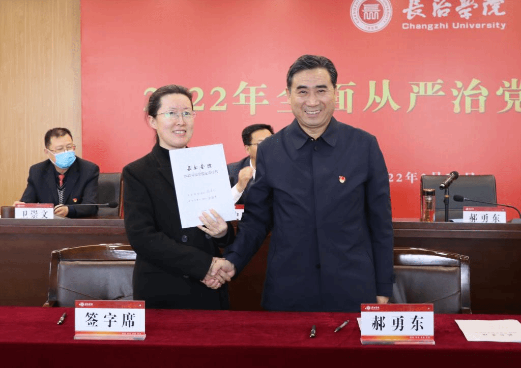 会上,郝勇东与党务部门负责人、二级党委书记代表签订《全面从严治党主体责任目标责任书》,与行政部门负责人、教学系部主任代表签订《全面从严治党“一岗双责”目标责任书》。郝勇东、曹景川与部门负责人、教学系部党政负责人代表签订《安全稳定责任书》。