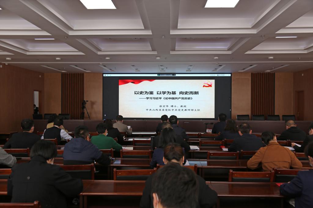 培训采取线上线下相结合方式进行,邀请了山西省委党校中共党史教研部主任、山西省中共党史学会副会长张宏华教授作辅导报告。张宏华围绕“以史为鉴、以学为基、向史而新”的主题,从党史的价值意蕴、党史蕴含的科学思维方法和党史的实践指向等方面深入讲解了党员干部树立正确党史观的重要意义及方法,以及党史对当今世界的实践指导作用。