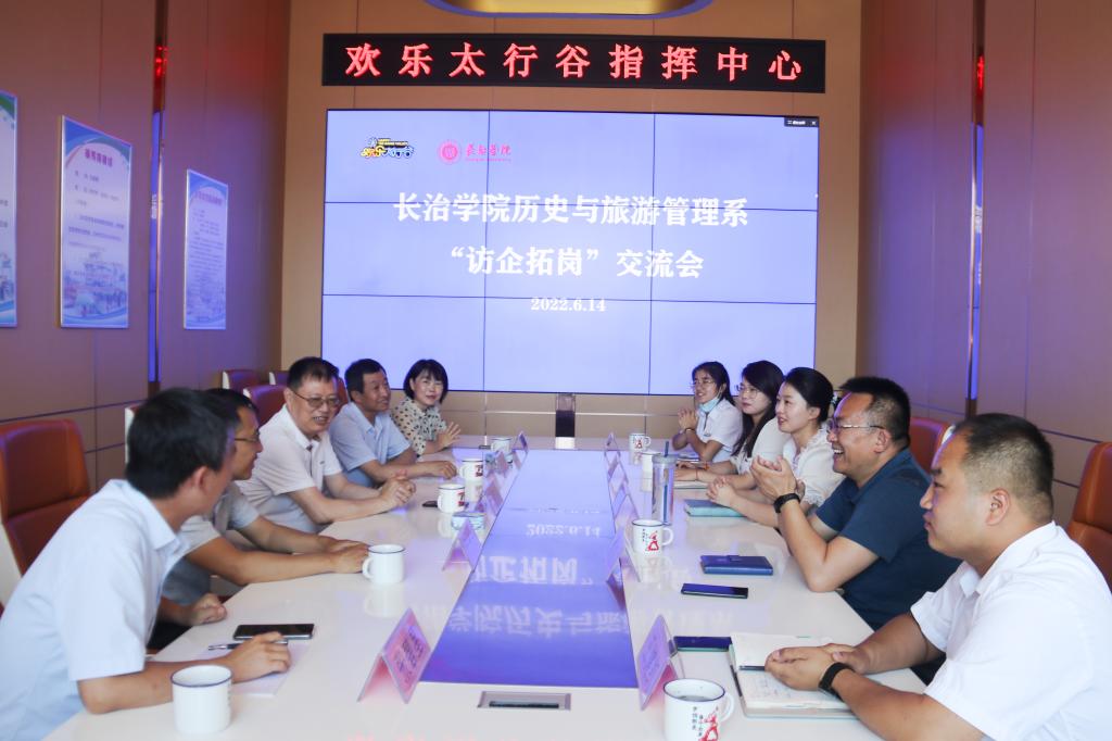 为进一步贯彻落实上级关于开展访企拓岗促就业专项行动的工作要求,6月14日上午,校党委委员、副校长卫崇文带队赴长治市假日欢乐大世界旅游开发有限公司进行走访调研。历史与旅游管理系党委书记王荣林、主任段建宏、副书记郭海霞、副主任张碧星等参加此次活动。
