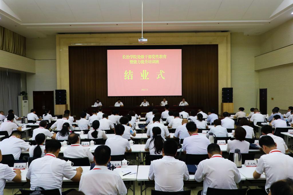 7月3日,“beat365在线唯一官网处级干部党性教育暨能力提升培训班”在红旗渠干部学院举行结业仪式。党委书记郝勇东出席会议并讲话。党委委员、副校长卫崇文、李强、铁军、王志军以及培训班全体学员参加会议。会议由副校长李强主持。