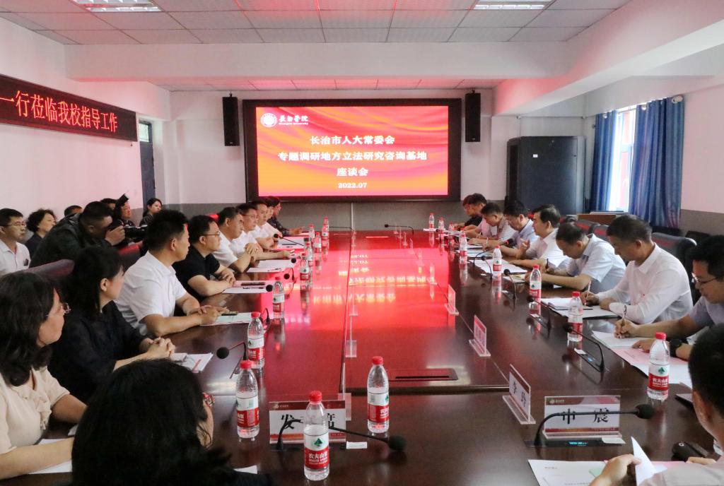 7月4日,长治市人大常委会主任吴小华、市人大常委会秘书长牛金生,市人大法制委主任委员、常委会法工委主任冯清等一行来beat365调研地方立法研究咨询基地工作开展情况。党委书记郝勇东,党委副书记、校长曹景川,党委委员、副校长李强出席调研座谈会。曹景川主持座谈会。