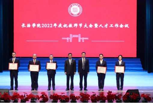在欢快的乐曲和热烈的掌声中,校领导为师德标兵、师德先进个人、模范教师、优秀教师、“十佳”魅力教师、“课程思政”教学名师、优秀教育工作者、“互联网+”大学生创新创业大赛优秀指导教师以及入选学校首批“太行学者”支持计划的教师和培育团队颁发了荣誉证书,为从教三十年教师颁发了纪念牌。新教师进行了入职宣誓。