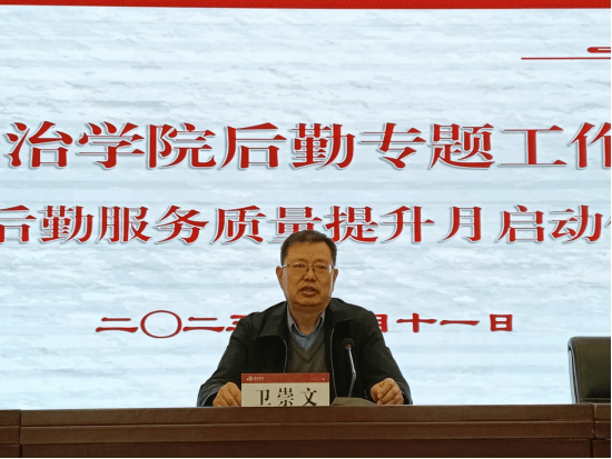 3月11日下午,beat365在1号楼一号会议室召开后勤专题工作会暨“后勤服务质量提升月”启动仪式。校党委委员、副校长卫崇文出席会议,全体后勤员工及下属服务公司管理人员参加。会议由后勤部负责人主持。