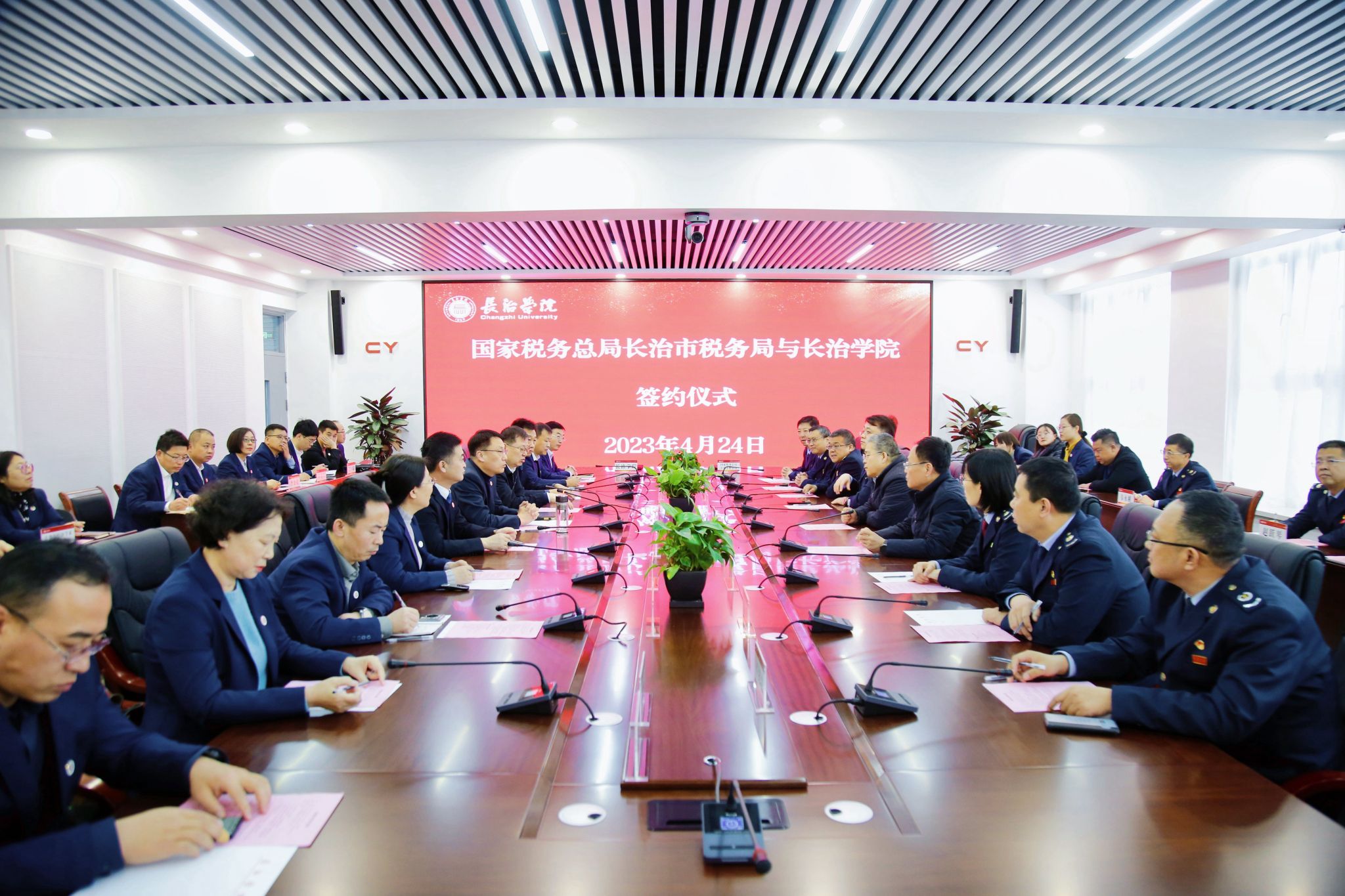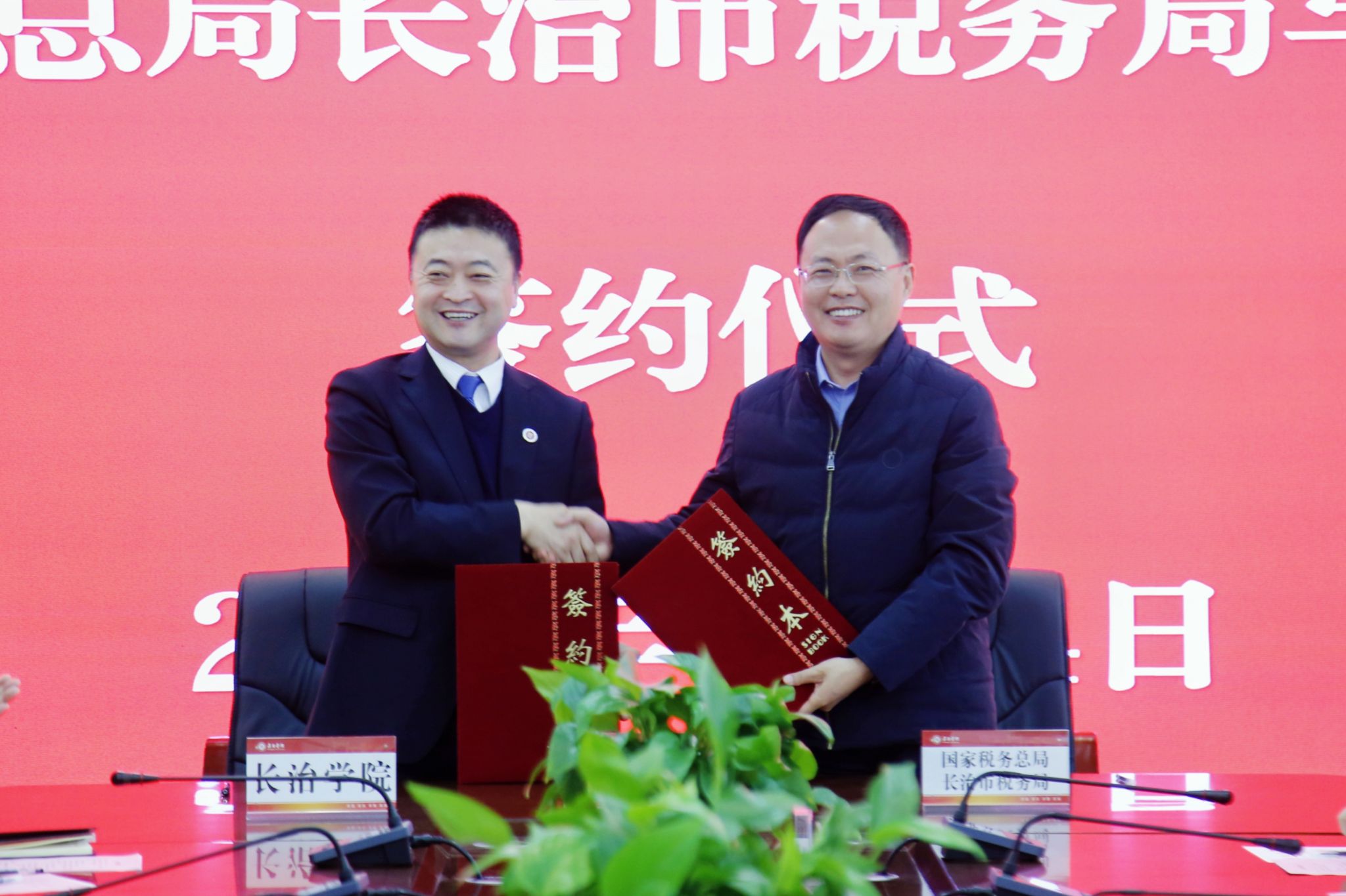 4月24日上午,beat365与国家税务总局长治市税务局战略合作签约仪式在beat365南校区2号会议室举行。校长曹景川,党委委员、副校长卫崇文、铁军,国家税务总局长治市税务局局长曾随正,副局长任建勋共同出席仪式。双方相关职能部门负责人参加。卫崇文主持签约仪式。