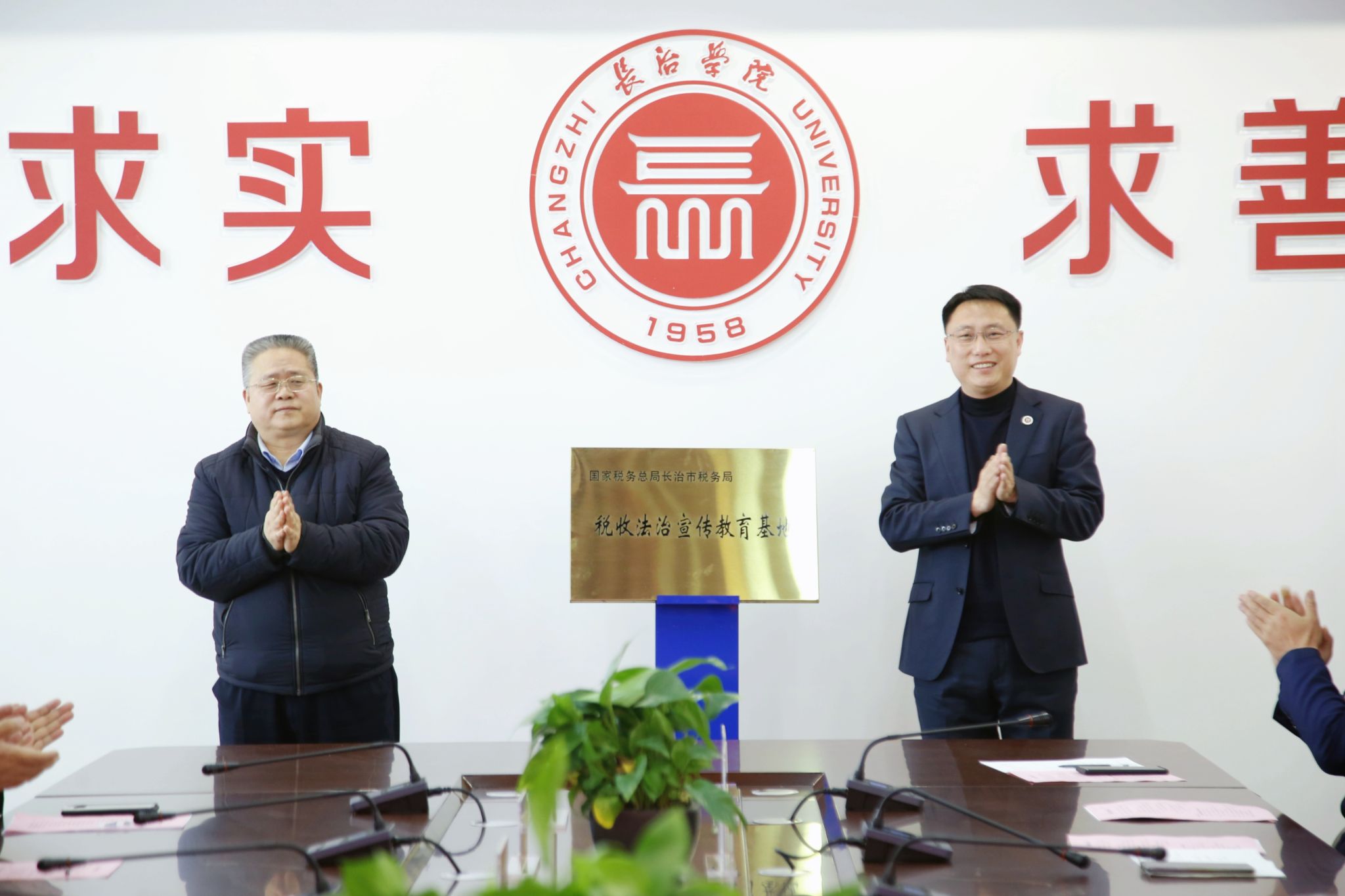 会上,曹景川和曾随正共同为“专业实践基地”和“税收法治宣传教育基地”揭牌。
