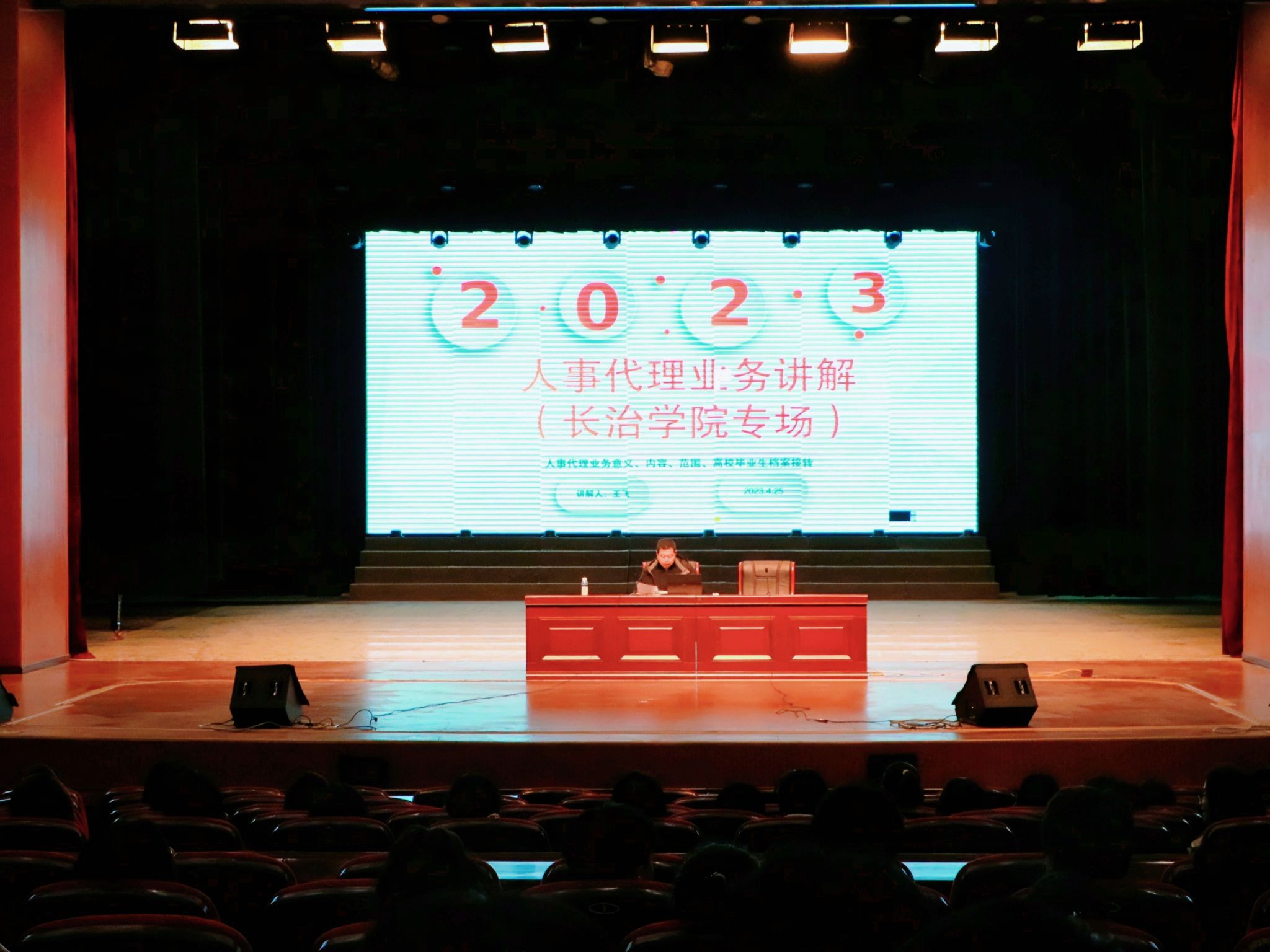 4月25日下午,beat365在实验剧场举办“进校园、送服务”宣讲会,邀请长治市人力资源和社会保障局王飞、李欣就高校毕业生就业创业相关内容进行宣讲。辅导员和毕业生代表共500余人参加活动。宣讲会由就业创业指导中心主任段浩主持。