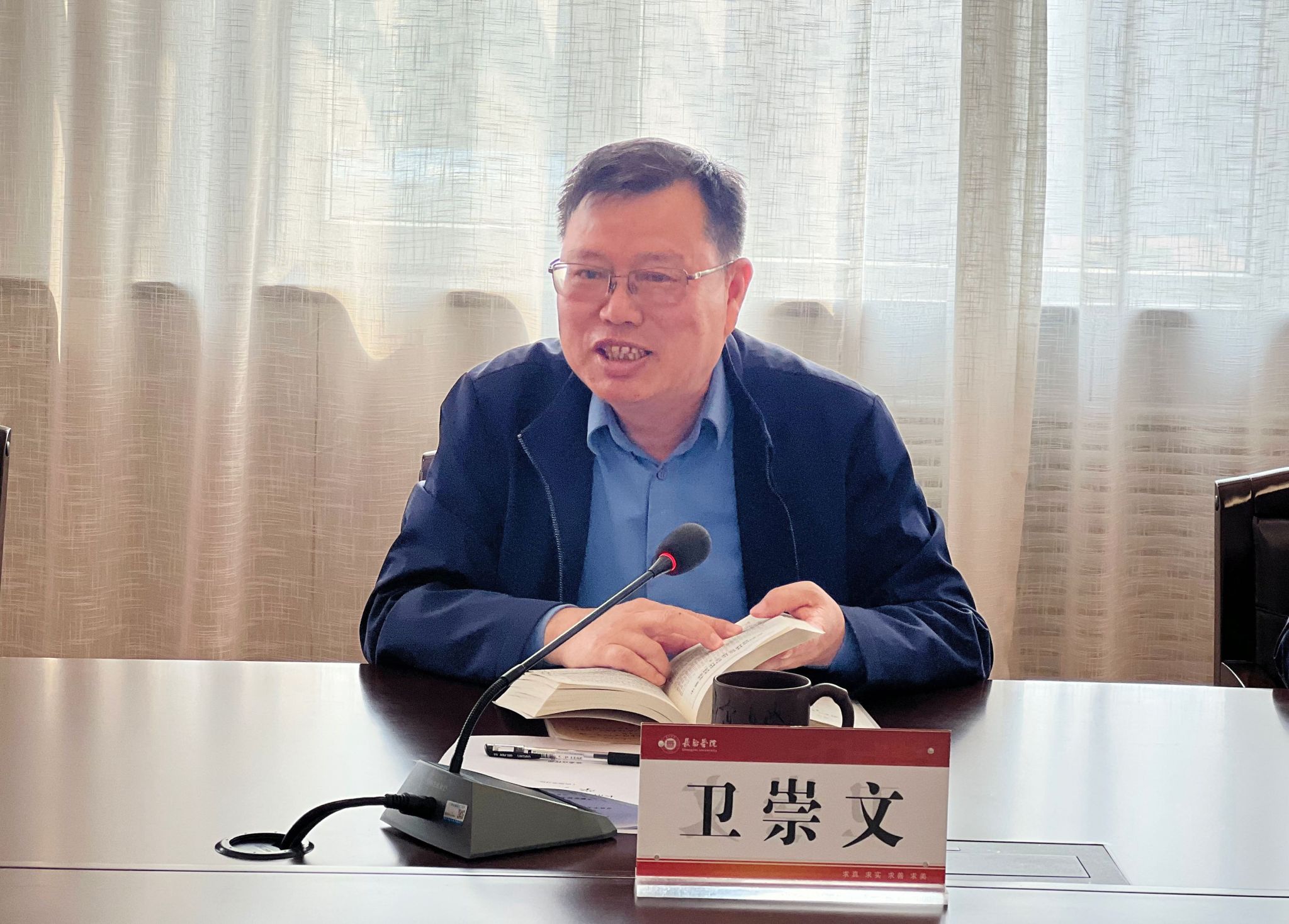 党委委员、副校长卫崇文领学了《习近平著作选读》第一卷中的具体篇目《在创造性转化创新性发展中延续民族文化血脉》,做了“坚持立德树人 坚定文化自信”的专题辅导。