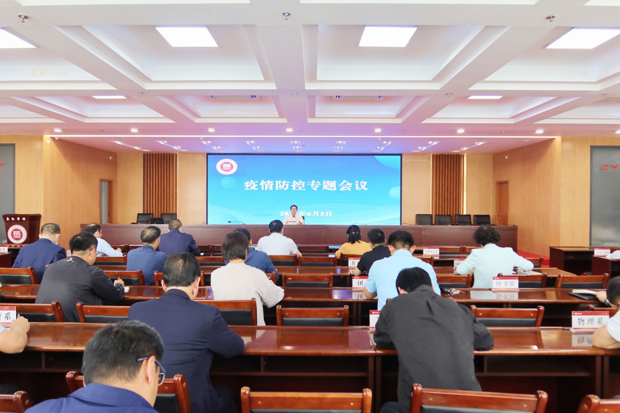 6月5日下午,beat365在北校区1号会议室参加全省教育系统疫情防控视频调度会,学校相关单位负责人和各系部党委副书记参加会议。