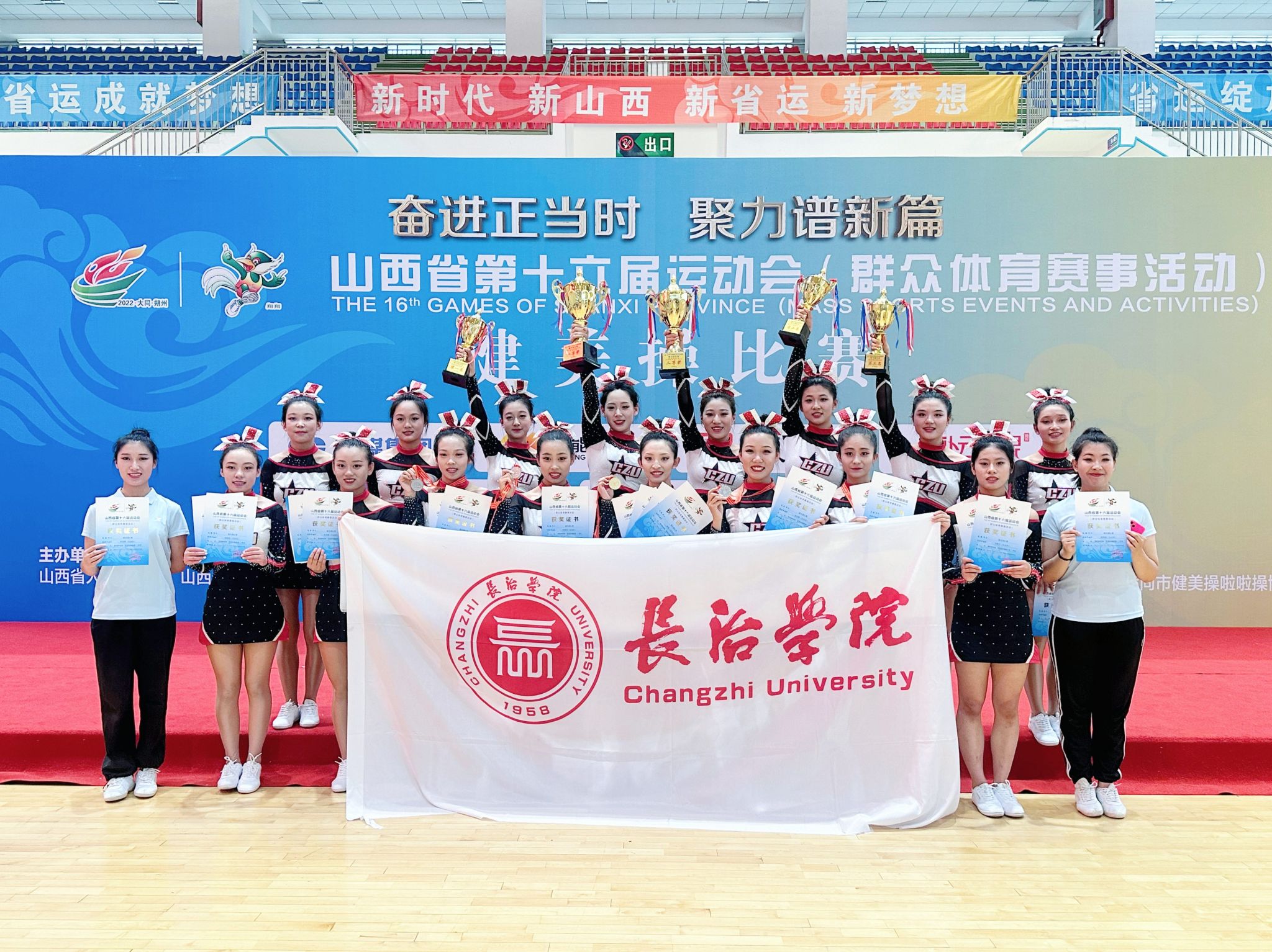 7月22日,山西省第十六届运动会群众体育赛事健美操比赛在大同市云州区体育馆开赛,beat365体育系健儿代表长治市参加了本次比赛。经过激烈角逐,beat365代表队获得花球啦啦操规定动作一等奖和花球啦啦操自选动作二等奖的优异成绩。
