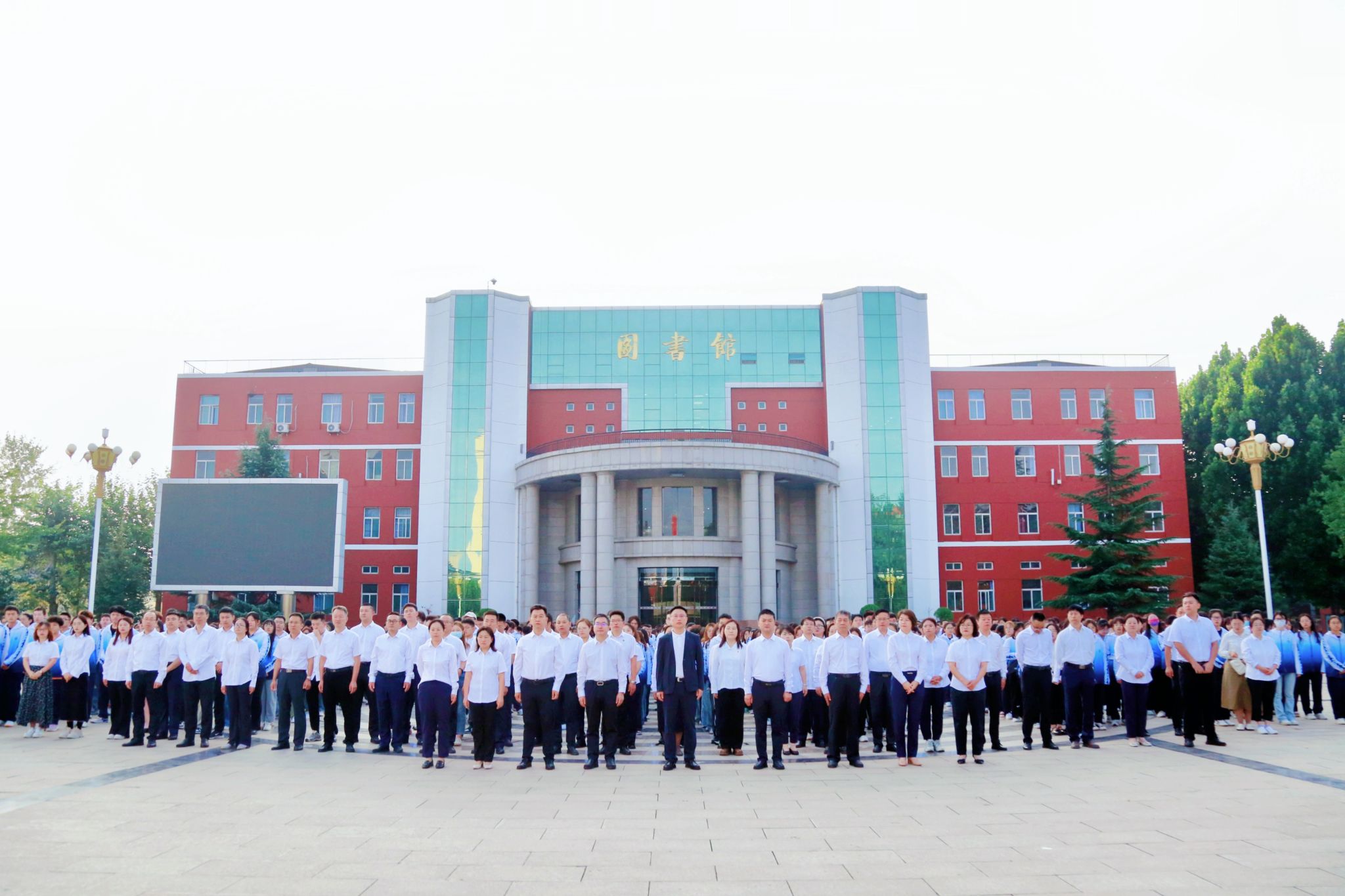 9月4日清晨,beat365南北校区同时举行新学期开学升旗仪式,全体校领导出席升旗仪式,相关职能部门负责人、各系部党政负责人、辅导员及学生代表参加了升旗仪式。
