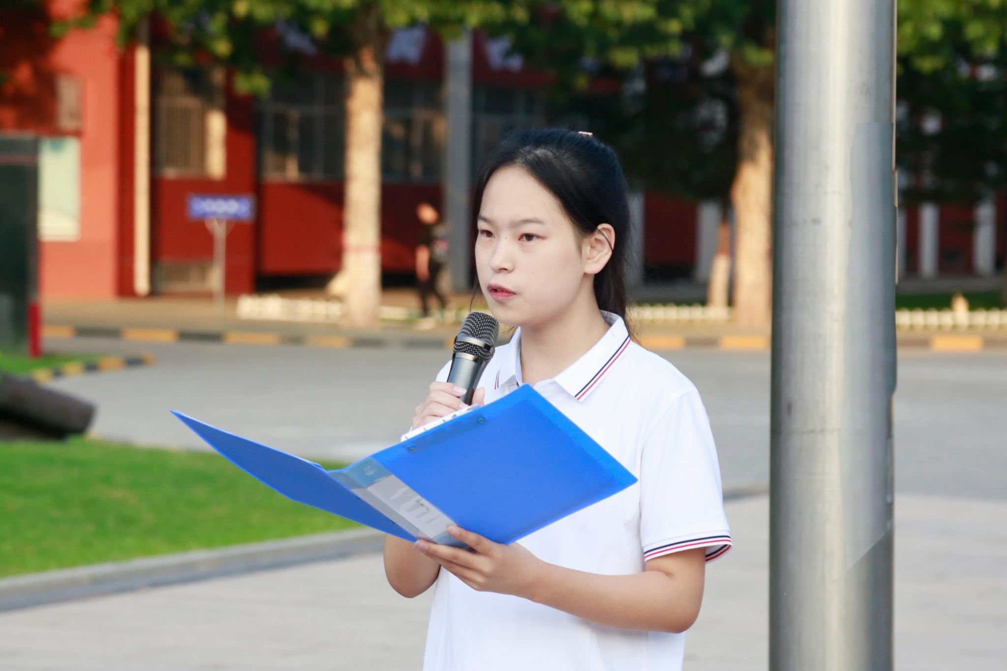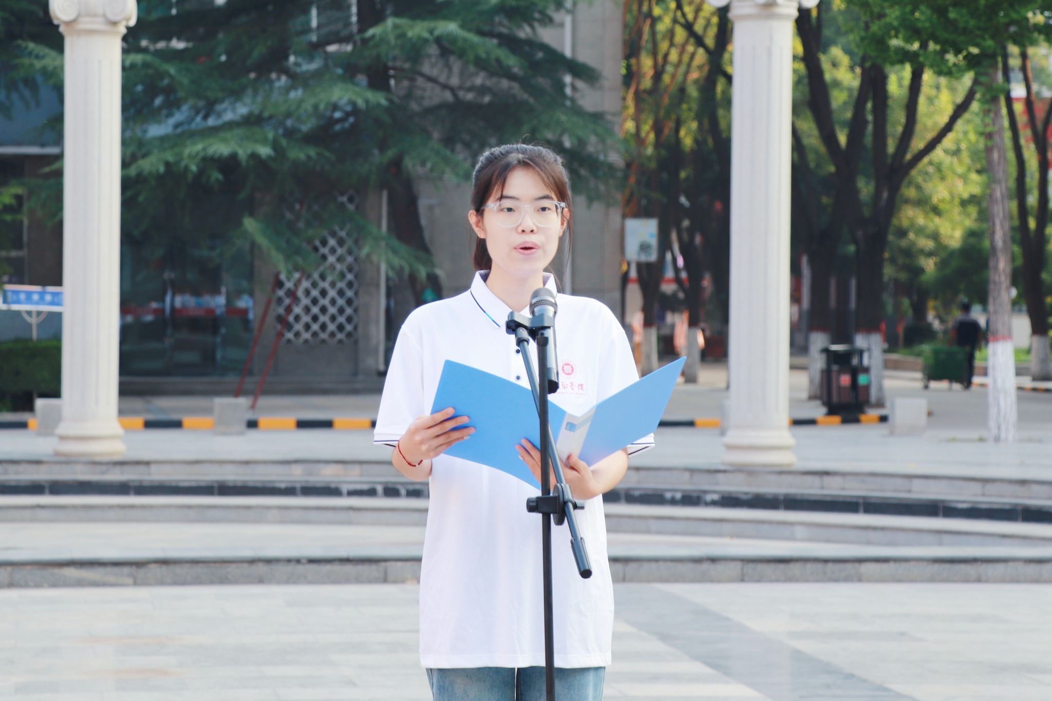 数据2101班冯晓平、汉语2101班马月园作为学生代表在国旗下发言,表示要牢记习近平总书记对青年的殷切嘱托,努力做有理想、敢担当、能吃苦、肯奋斗的新时代青年。