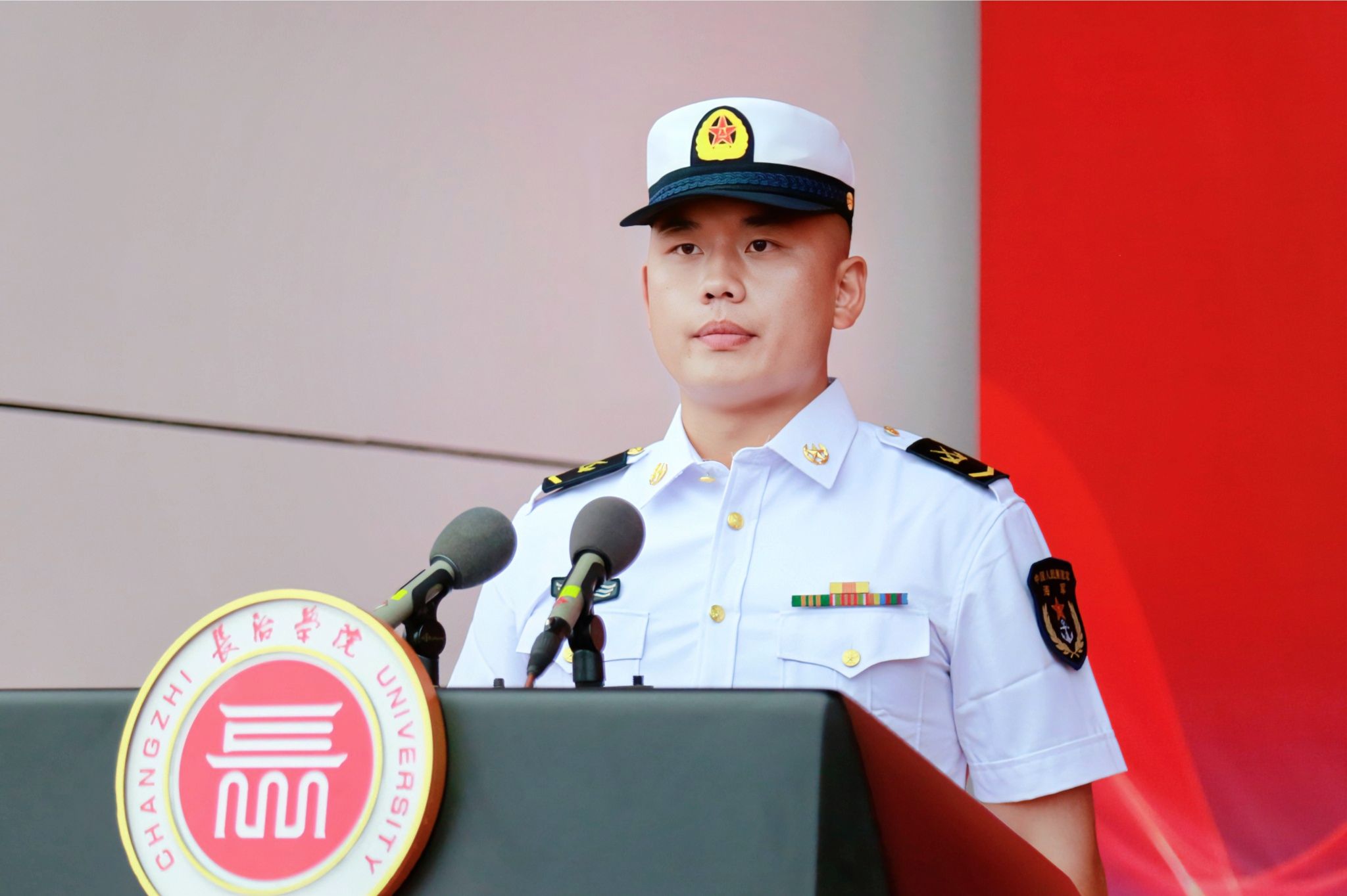 92727部队教官代表郑豪表态发言。他表示,军训作为新生入学的第一课,不仅帮助学生强健体魄、锤炼意志,也能有效增强同学们的国防观念和国家安全意识。作为本次军训的教官,将树立为学校、学生服务的观念,认真履行教官职责,确保军训任务圆满完成。