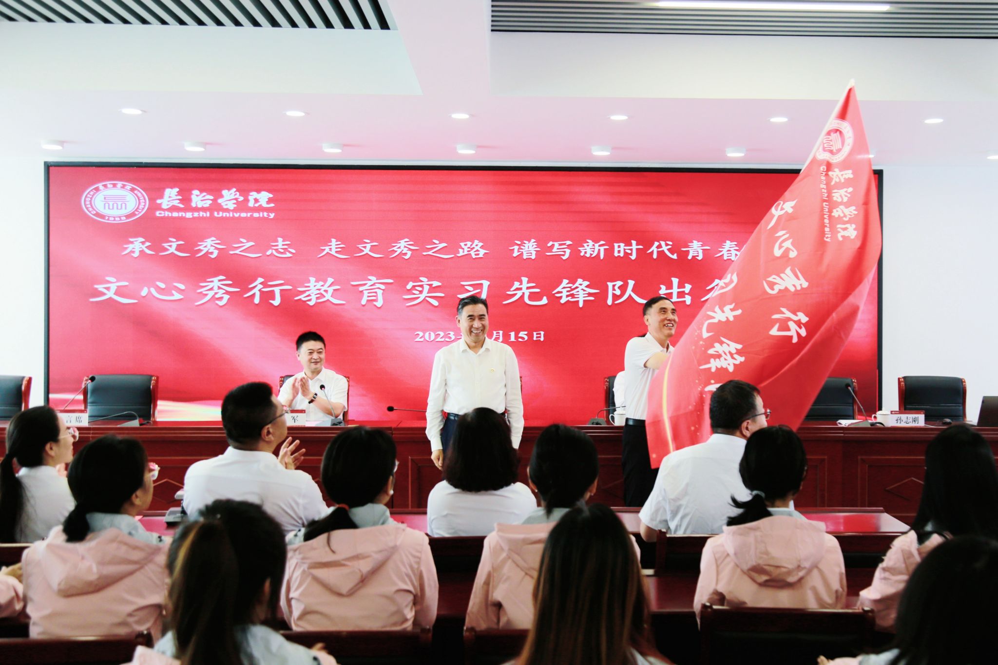 为落实立德树人根本任务,贯彻落实党和国家对新时代青年大学生的要求,传承beat365杰出校友黄文秀的榜样力量,推进教育实习工作高质量开展,9月15日上午,beat365举行“承文秀之志 走文秀之路 谱写新时代青春之歌——文心秀行教育实习先锋队”出征仪式。校党委书记郝勇东,党委副书记、校长曹景川,党委委员、副校长铁军出席大会。实习带队教师、教育系主任孙志刚,40名先锋队成员及教务部全体人员参加大会。大会由铁军主持。