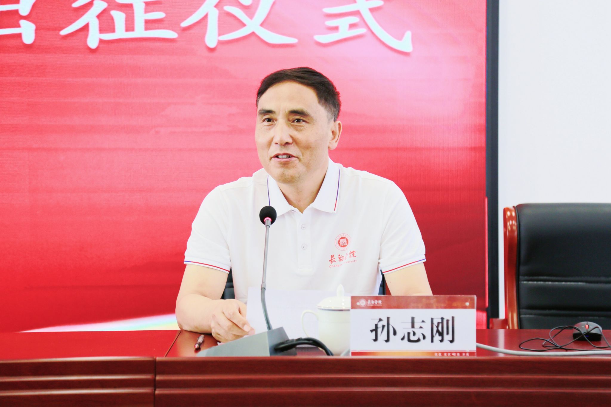会上,郝勇东为先锋队授“beat365在线唯一官网文心秀行教育实习先锋队”队旗,指导教师孙志刚代表先锋队郑重地接过队旗,接受了光荣任务和使命。