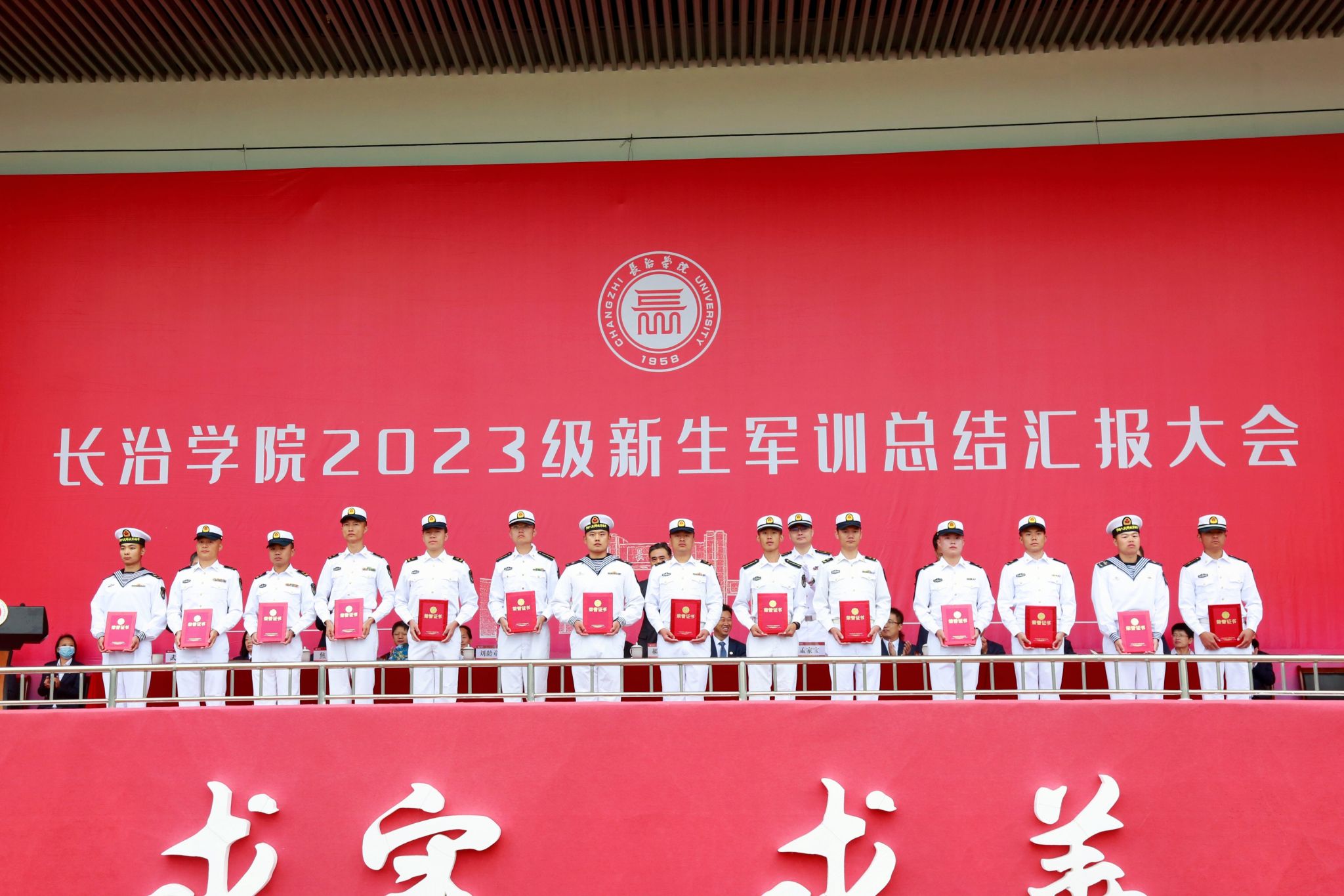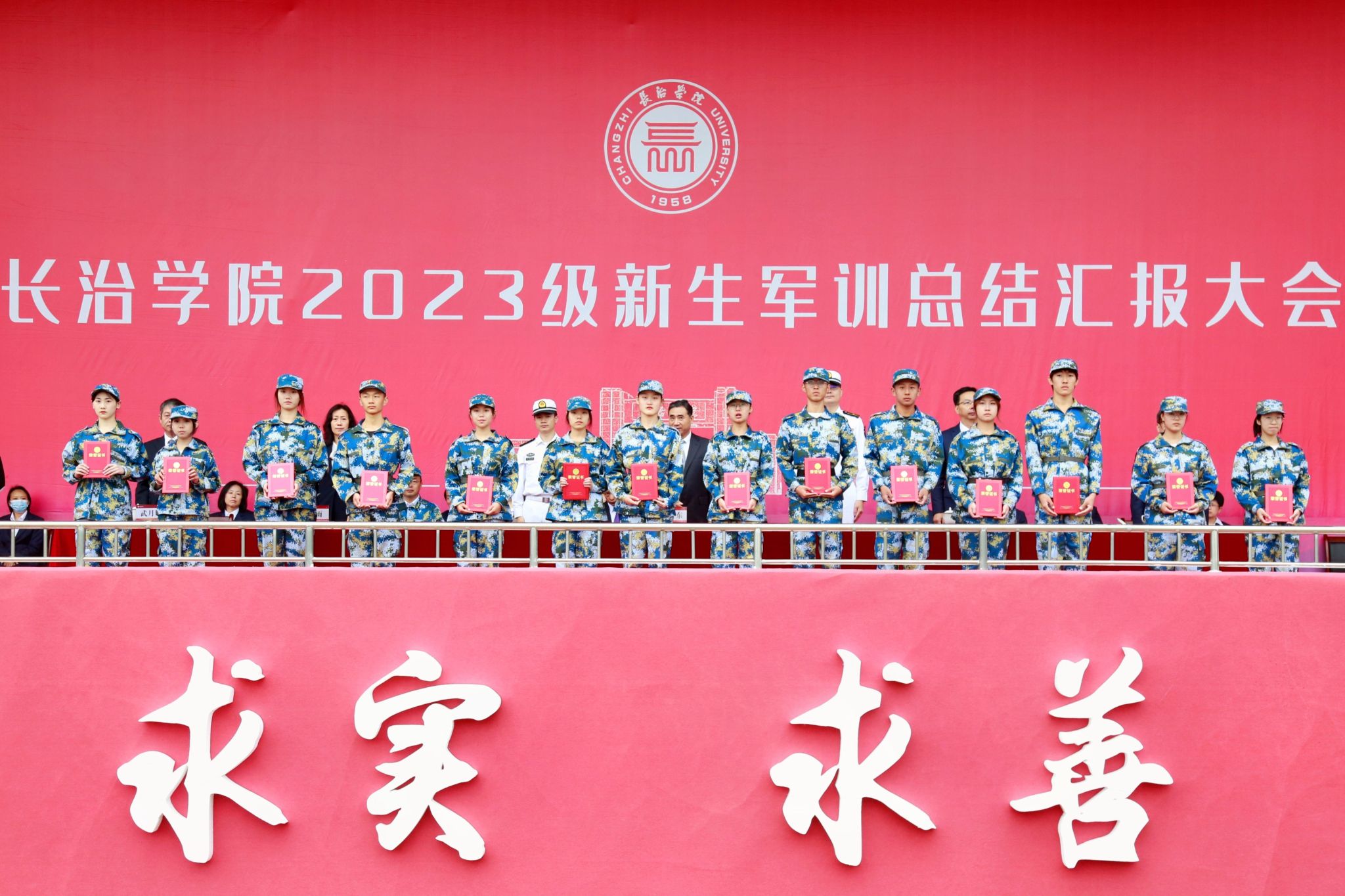 校领导和承训部队首长向军训中的获奖单位和个人颁奖。共有优秀教官31名,优秀班集体31个,军训标兵236名。