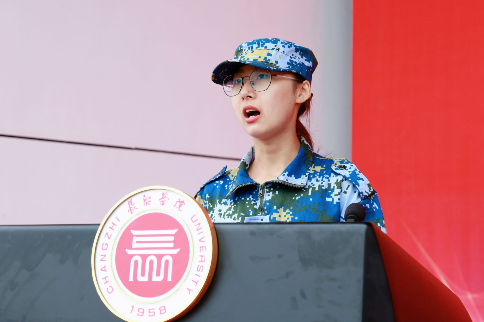 数学系数学2301班张嘉耀作为军训标兵代表发言。她表示,这次军训留给了同学们美好的回忆,今后将继续发扬不怕苦、不怕累的精神,带着满腔的热情和顽强的意志不断超越自我、勇往直前。