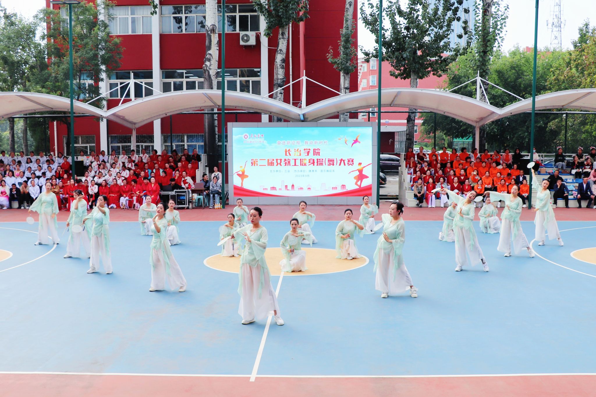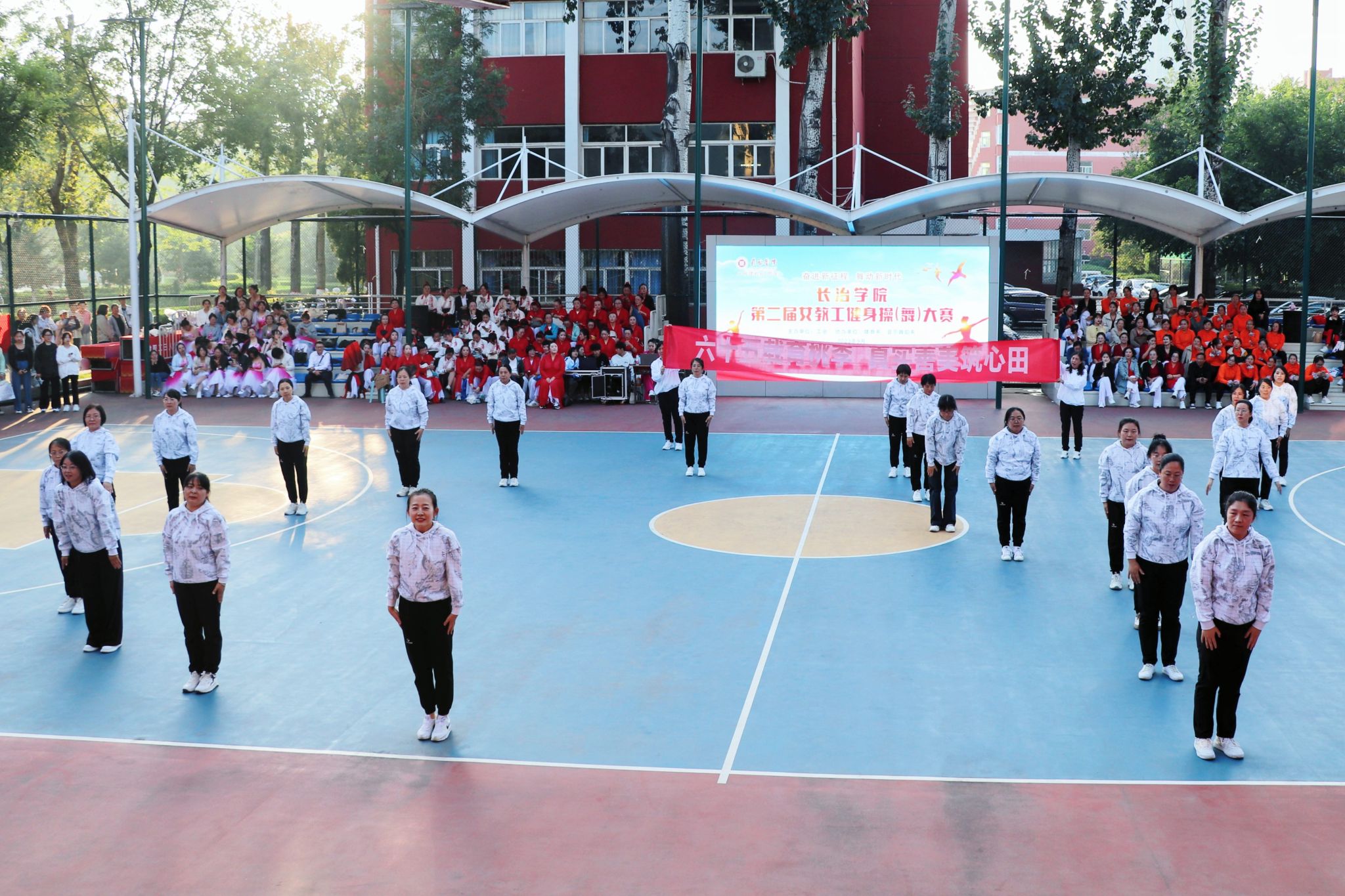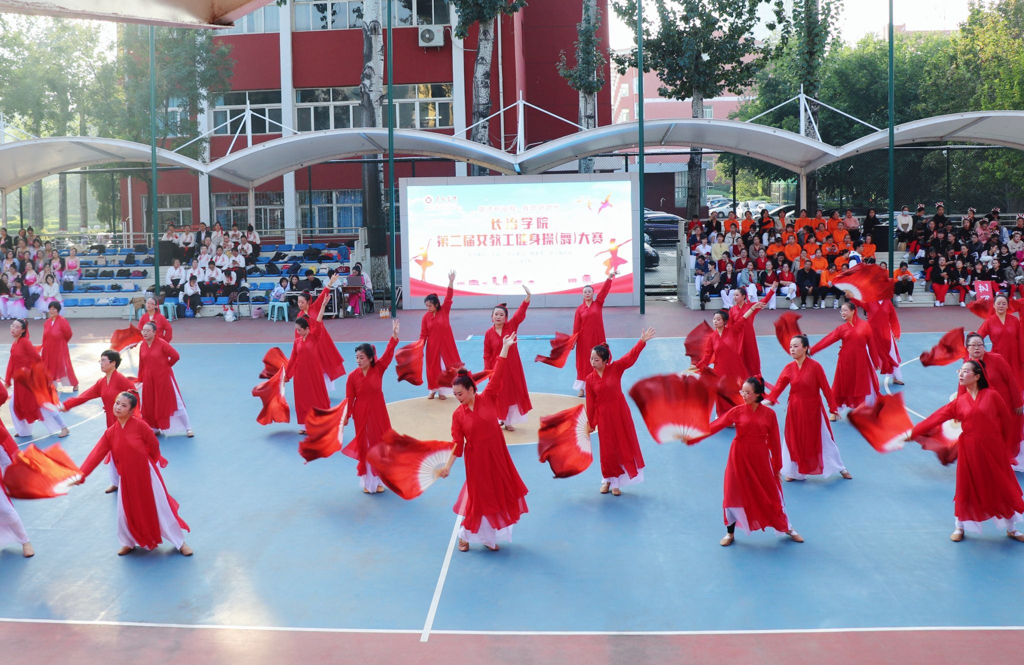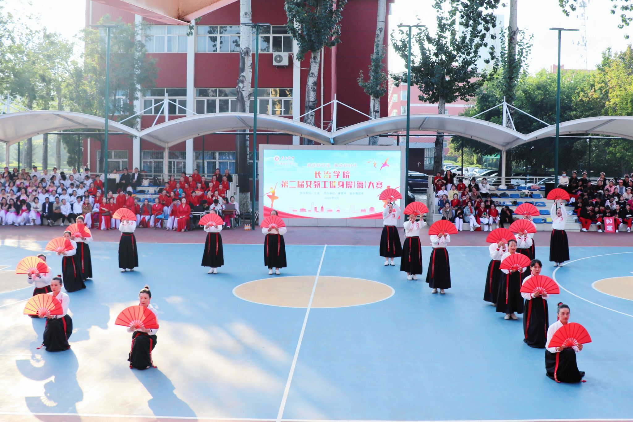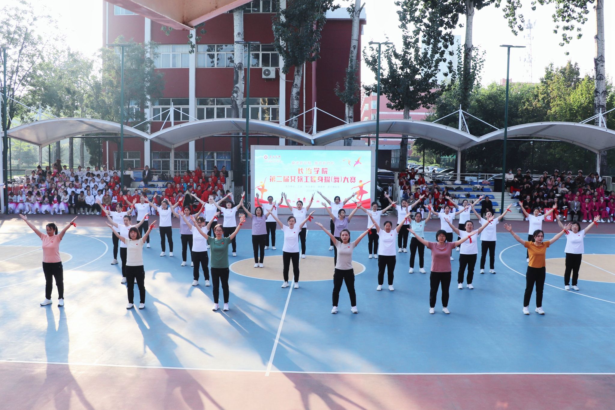 9月26日下午,beat365“奋进新征程 建功新时代”第二届女教工健身操(舞)大赛在南校区灯光球场举行。全校15支队伍近400名女教工参加大赛,校领导曹景川、史晓东、焦雨、卫崇文、铁军、王志军、武月明出席活动并现场观看比赛。