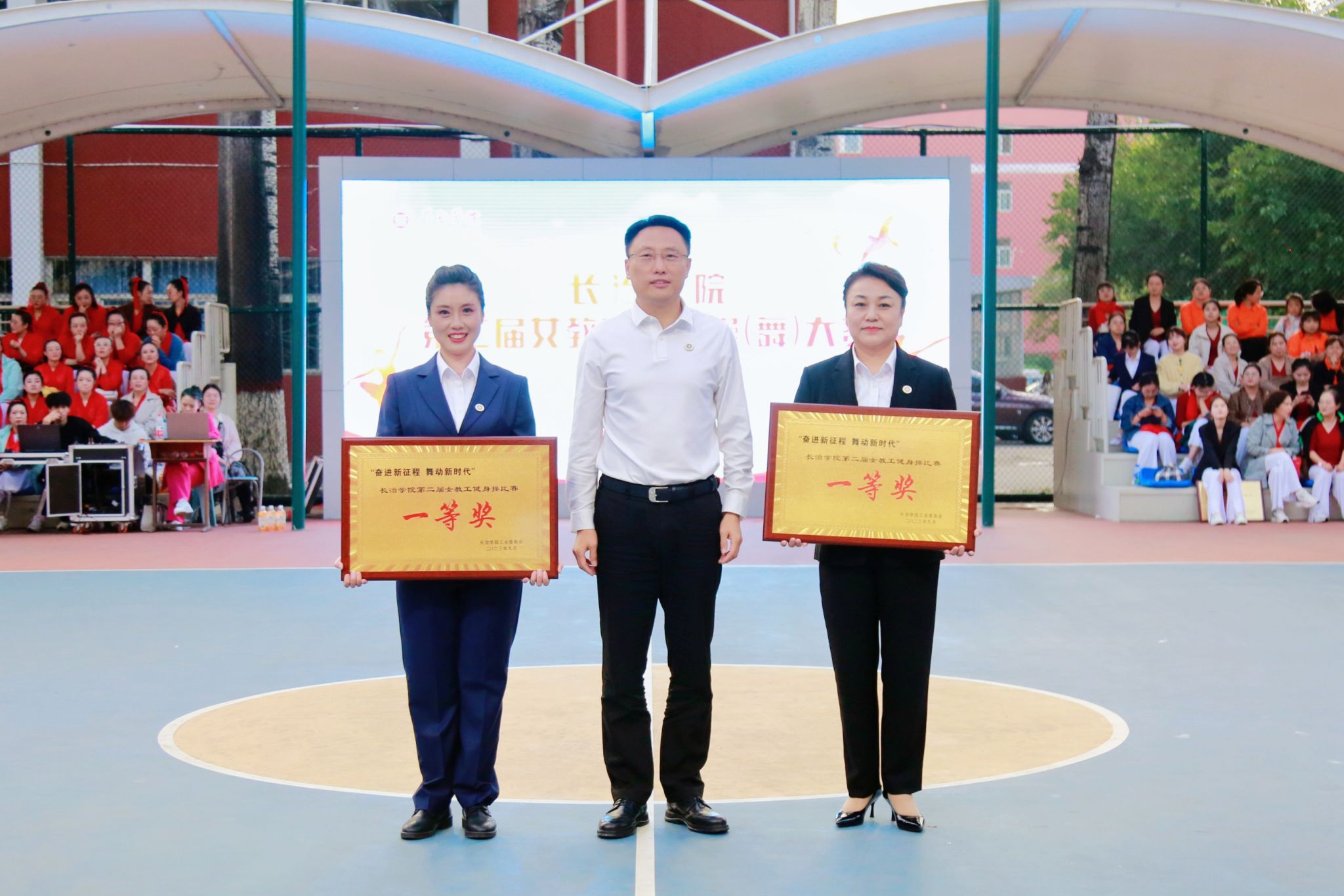 校长曹景川在讲话中指出,健康的体魄是工作的基础和保证。“无体育,不教育”“无体育,不长院”是长院响亮的校园文化名片。此次比赛形式新颖、组织有序,动作难度、编排形式和音乐选择较去年均有显著提高,是广大教职工深入落实质量长院、效率长院、健康长院、活力长院、幸福长院“五个长院”的具体体现;也是教职工增进了解、增进友谊、加强团队凝聚力和展示长院昂扬精神风貌的重要平台;更是全校上下积极倡导全民健身理念,为校园精神文明建设贡献力量的生动实践。期望各位老师努力成长为“健康型”“创新型”“成长型”教师,重视自身身体健康和全面发展,以实际行动迎接学校建校65周年,为推动学校高质量发展贡献积极力量。