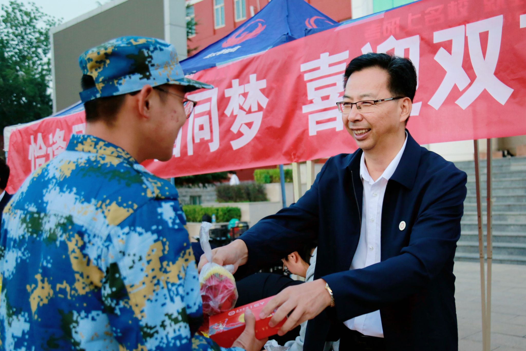 在慰问活动现场,校领导与同学们亲切交谈,询问他们在校的学习生活和军训情况,鼓励同学们树立远大志向,认真学习、增长才干、练就本领,用奋斗装点青春的亮丽底色。