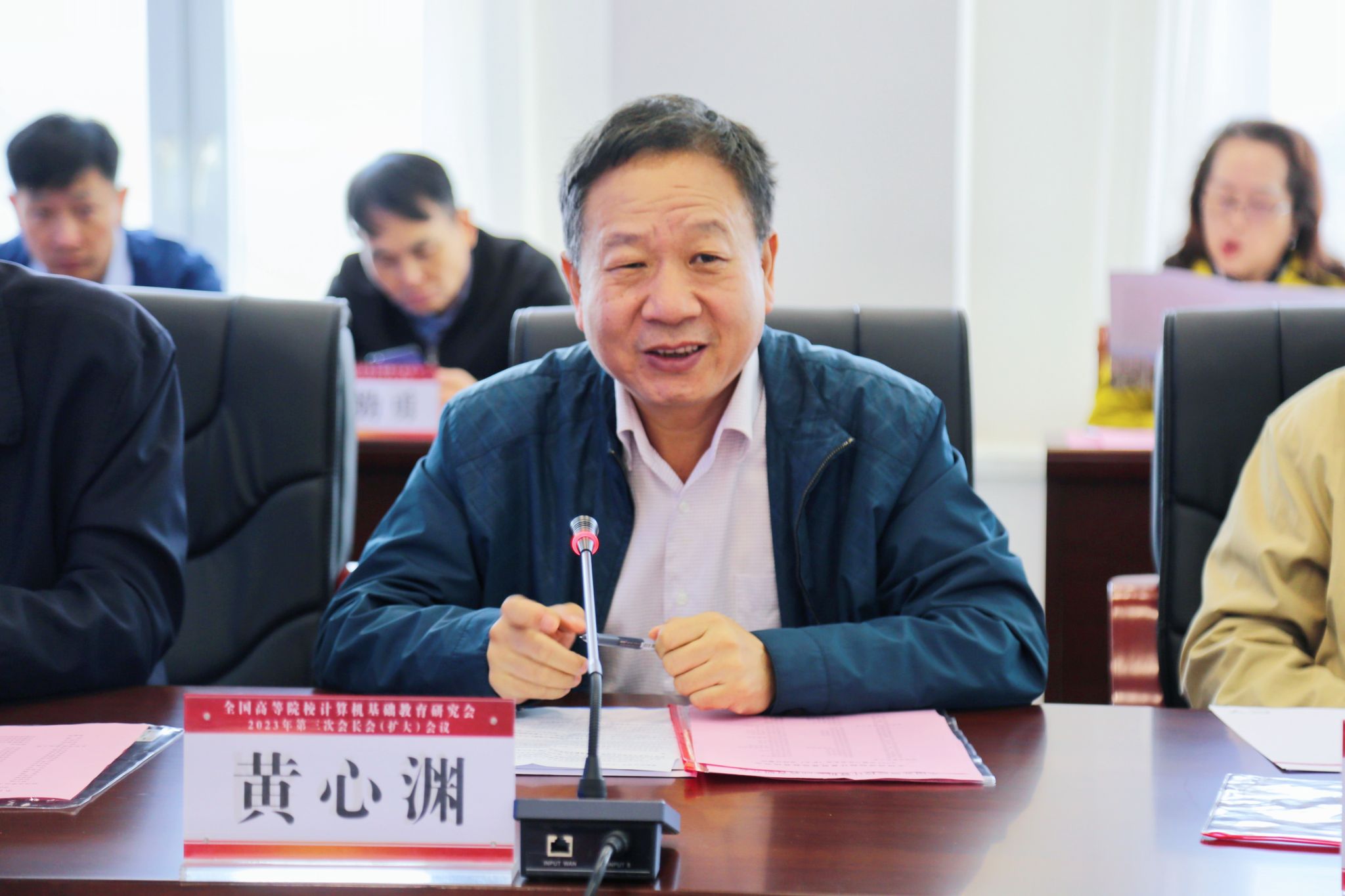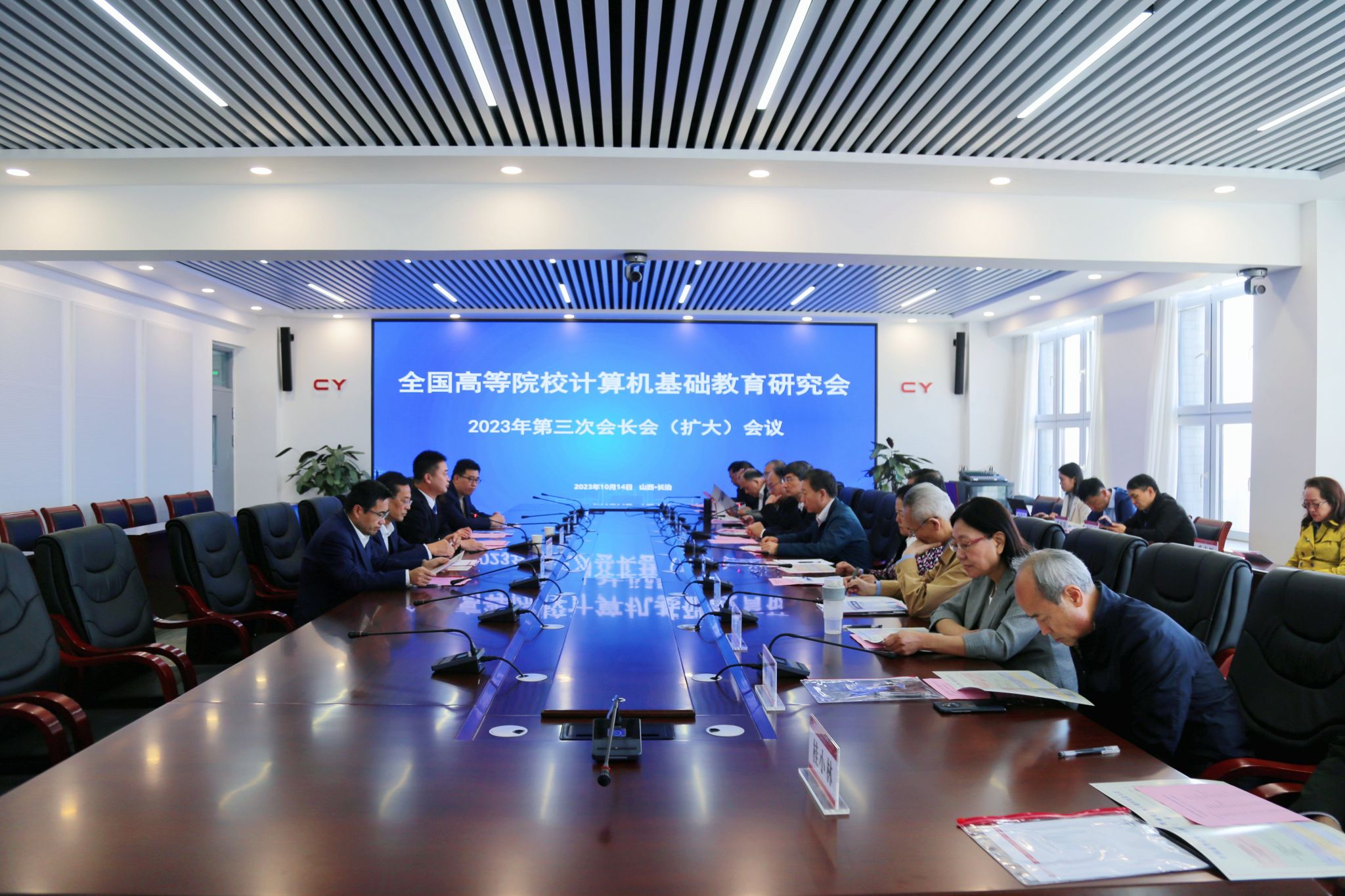 十月的上党古城秋高气爽,瓜果飘香。值此美好的季节,全国高等院校计算机基础教育研究会的各位专家学者齐聚beat365在线唯一官网,召开2023年第三次会长(扩大)会议。出席此次会议的有,中国传媒大学黄心渊会长、浙江大学何钦铭(国家级教学名师)、西北大学耿国华(国家级教学名师)、清华大学郑莉、西安交通大学桂小林、深圳大学王志强、同济大学杨志强、天津大学张钢等多位副会长、秘书处工作人员和四十周年纪念大会组委会成员。各位专家学者就研究会40 周年大会筹备事宜、数字人应用情况进行讨论和部署。beat365党委委员、副校长铁军和计算机系班子成员参加了会议开幕式。会议由研究会秘书长李畅主持。
