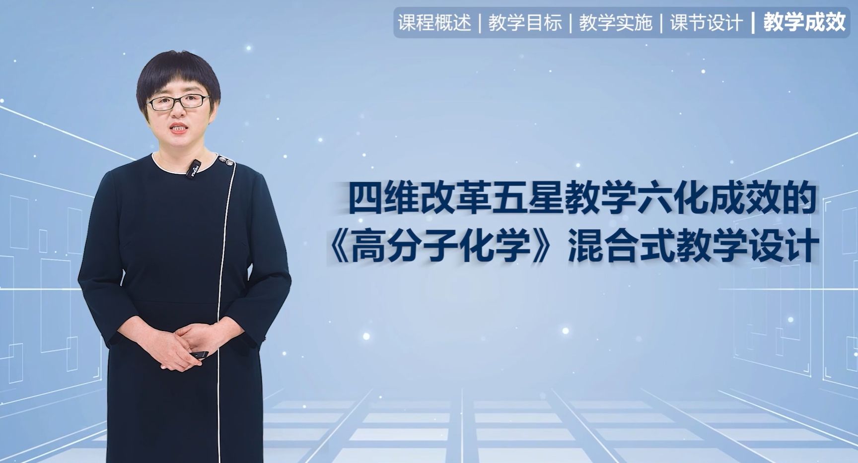 本届大赛于2023年5月25日启动,分为初赛、复赛以及现场决赛三个环节。本科组复赛收到全国约482所高校的1123门参赛课程,参赛教师共计3859名(主讲教师1123人,团队成员2736人)。梁亚琴教师团队的《高分子化学》课程以学生发展为中心,以提高学生教育教学和科研能力为双驱动,创建了“四维改革五星教学六化成效”的混合式教学体系。该教学体系通过重构课程内容、创设智慧学境、深化融合策略、完善教学评价四个维度,采用聚焦问题、激活旧知、传授新知、实战应用、融会贯通等五星教学模式,最终实现学习自主化、行为数据化、互动智能化、督学精准化、评价过程化和目标高阶化的六化成效。