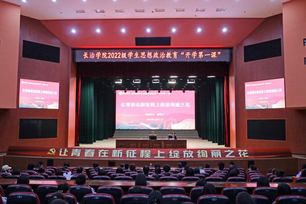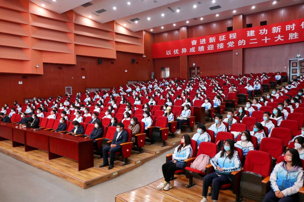 10月21日下午,校党委书记郝勇东结合学习党的二十大报告的思考感悟,以《让青春在新征程上绽放绚烂之花》为题,在实验剧场为2022级学生讲授秋季学期“开学第一课”,勉励广大学子牢记习近平总书记对青年的殷切嘱托,怀抱梦想又脚踏实地,敢想敢为又善作善成,让青春在新征程上绽放绚丽之花。党委副书记宋志燕主持。