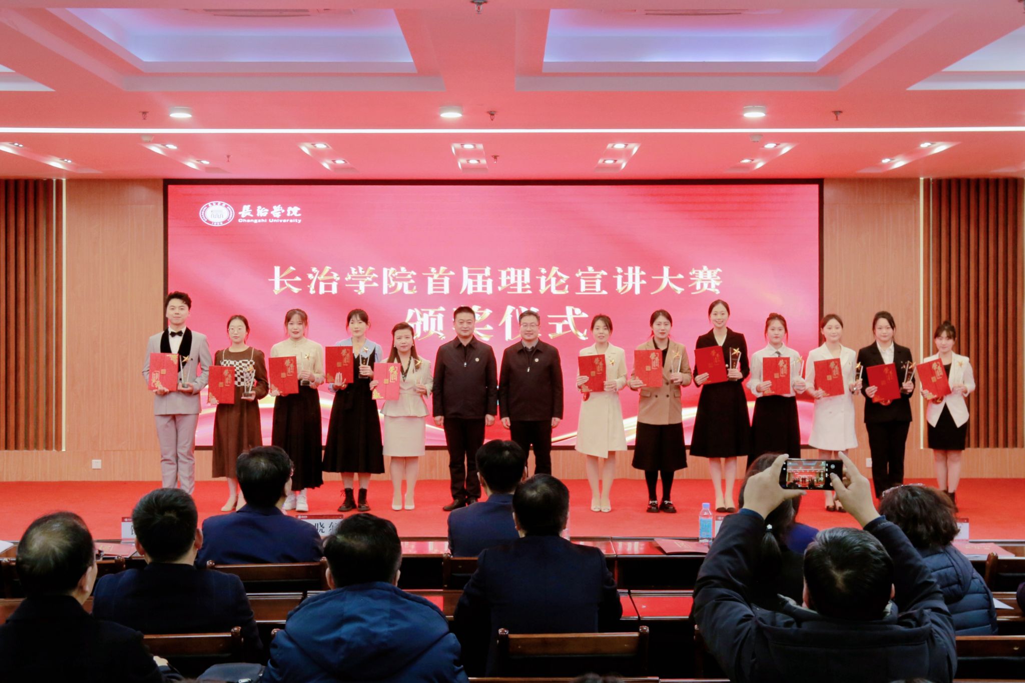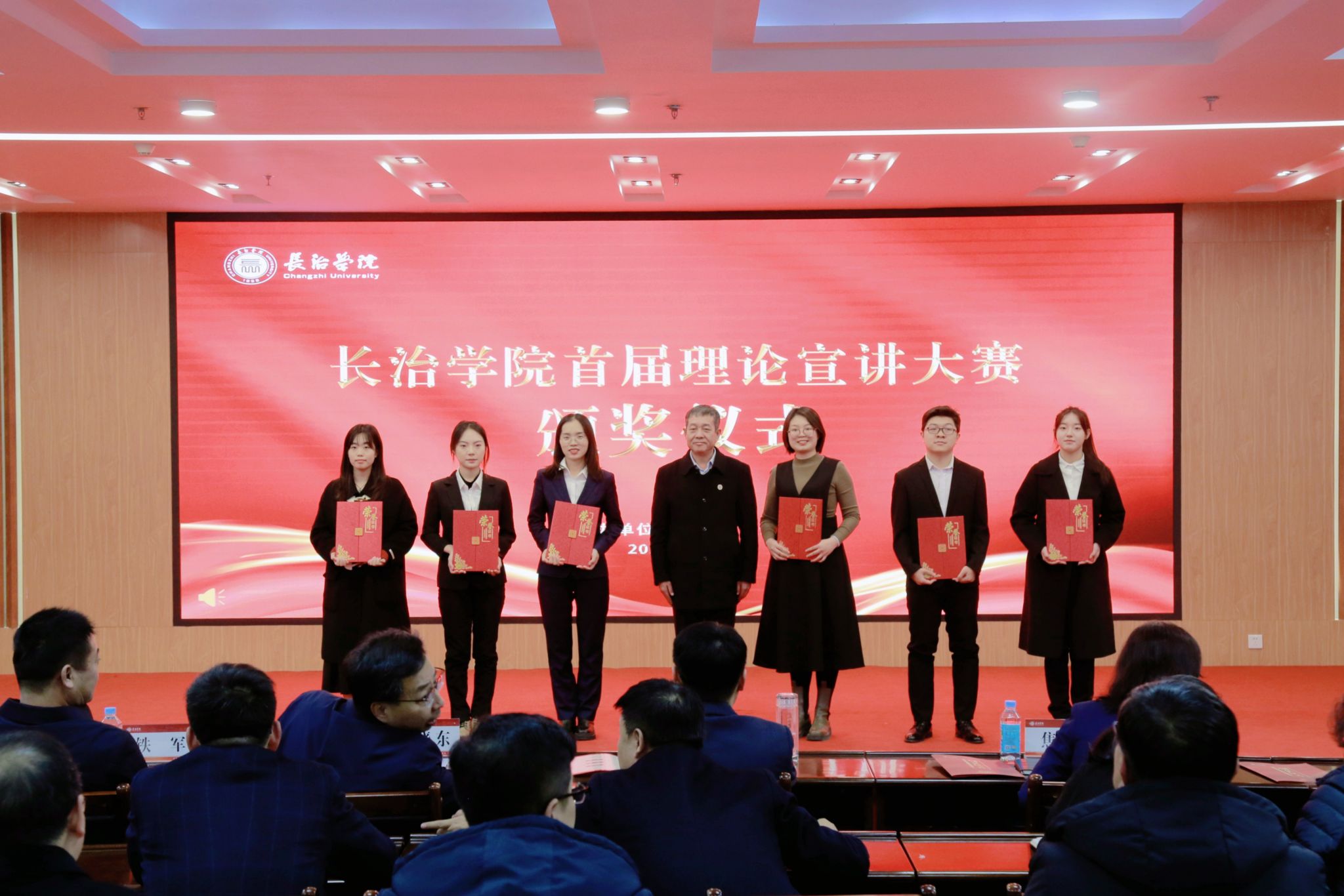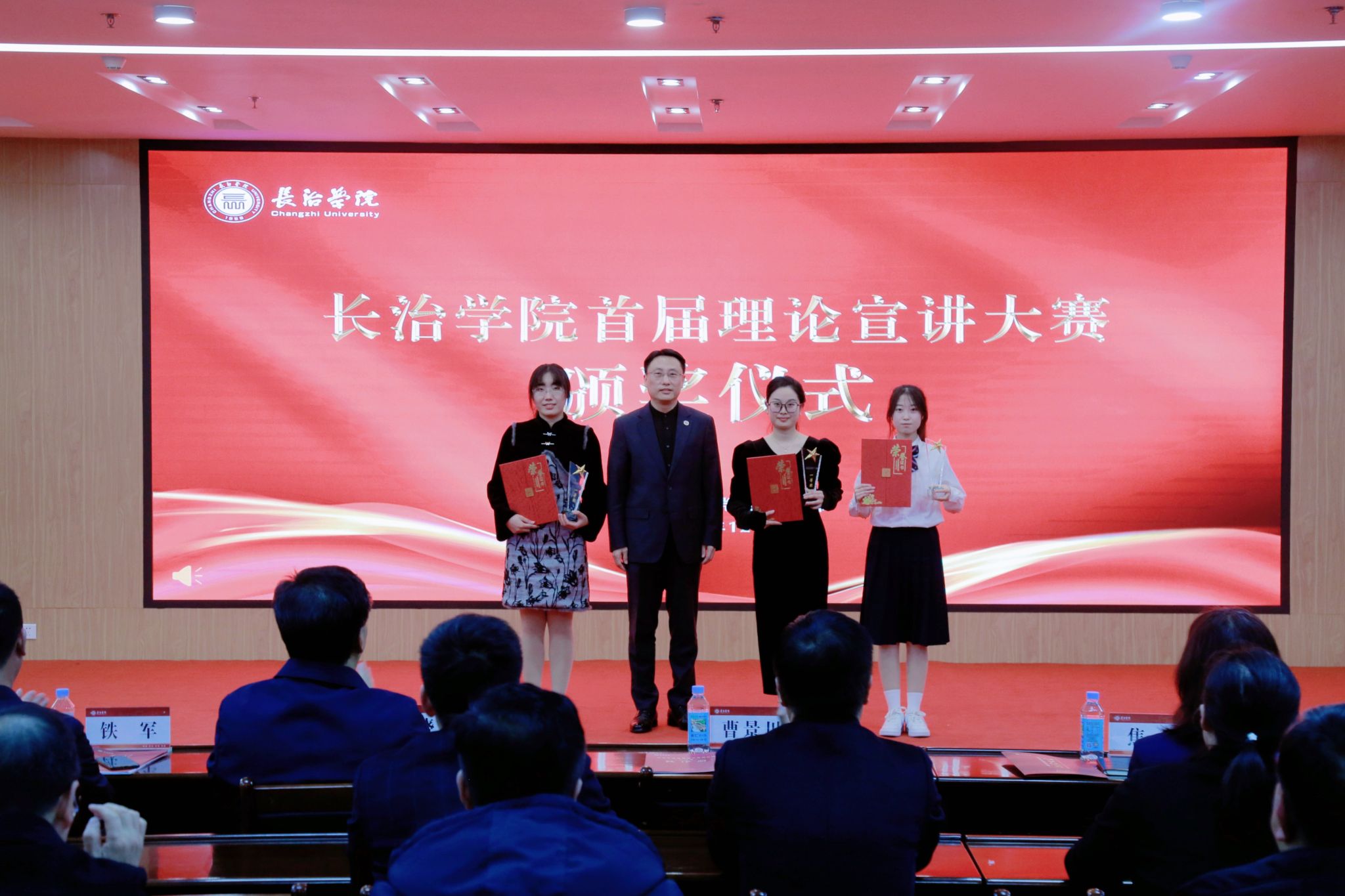 比赛结束后,现场举行了颁奖仪式。校长曹景川作总结讲话,校领导为获奖选手颁奖,党委副书记史晓东为太行先锋宣讲团成员颁发聘书。音乐舞蹈系教师李庄丽、教育系教师刘赟、法律与经济学系学生高慧洁、音乐舞蹈系学生张慧作为教工组和学生组获奖选手代表进行了现场宣讲展示。
